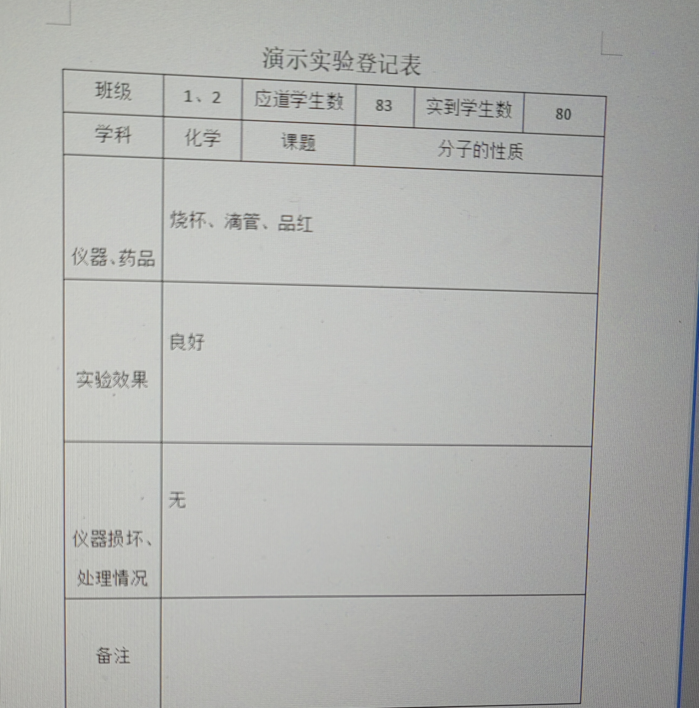 实验登记表
