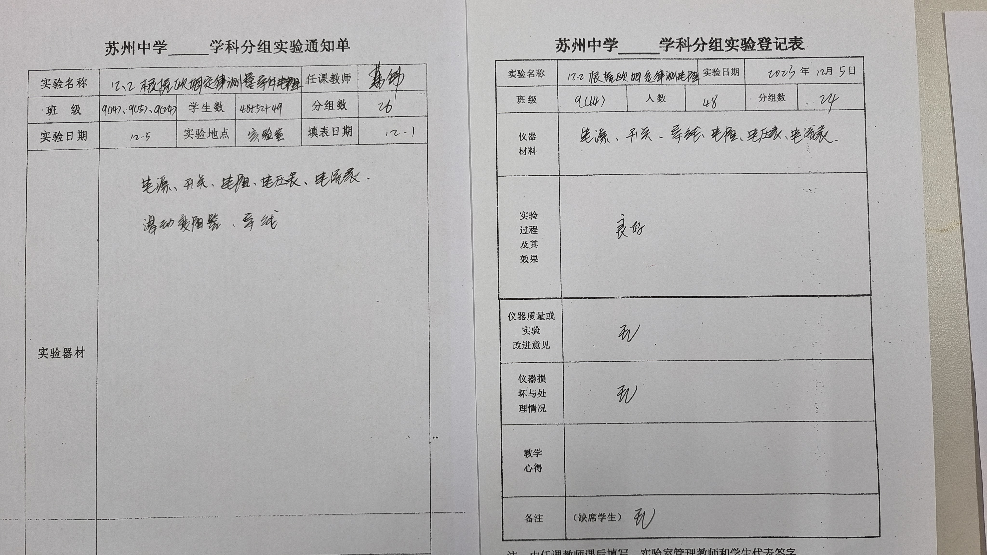 实验登记表