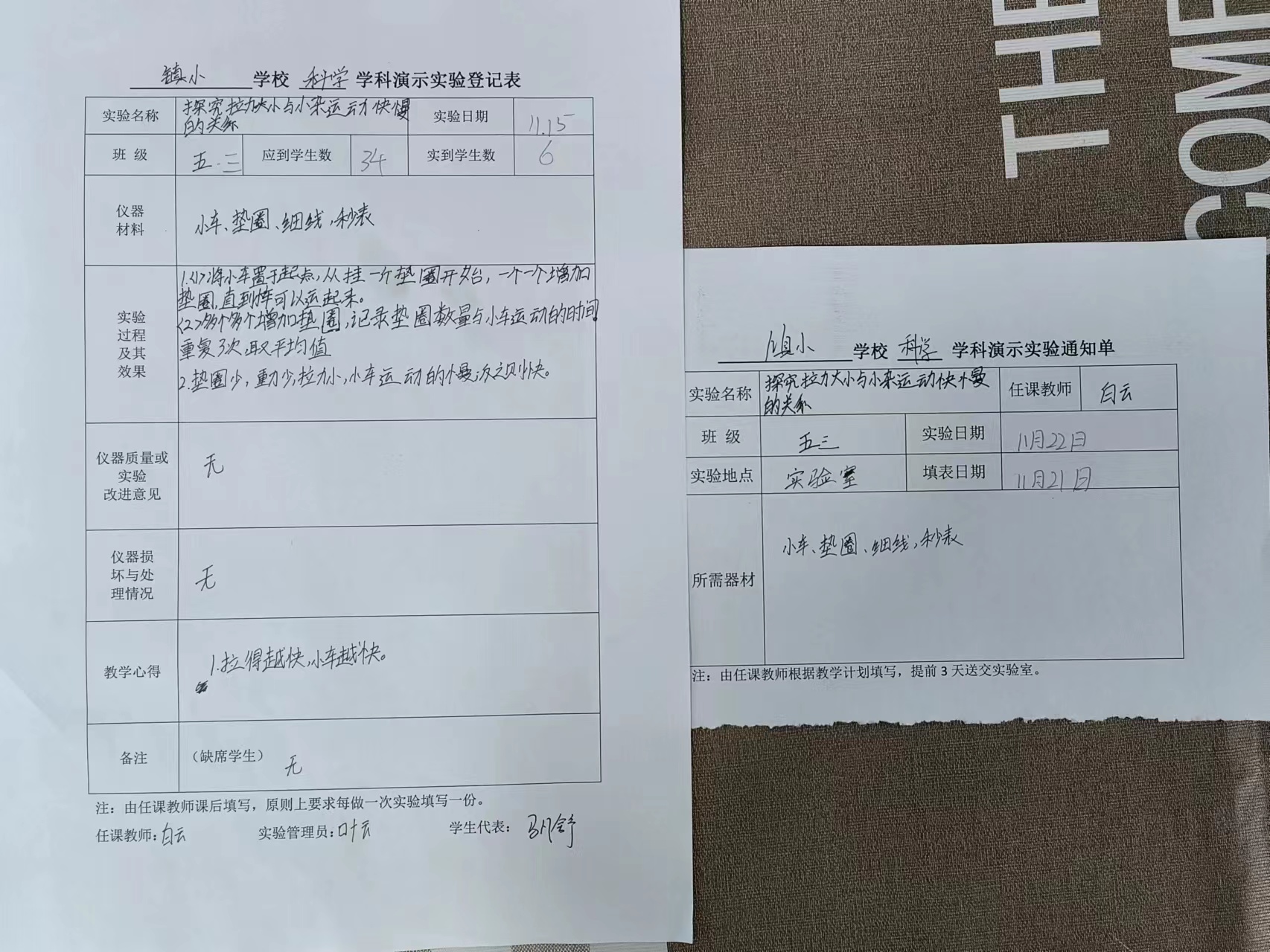 实验登记表