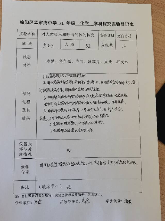对人体吸入和呼出气体的探究