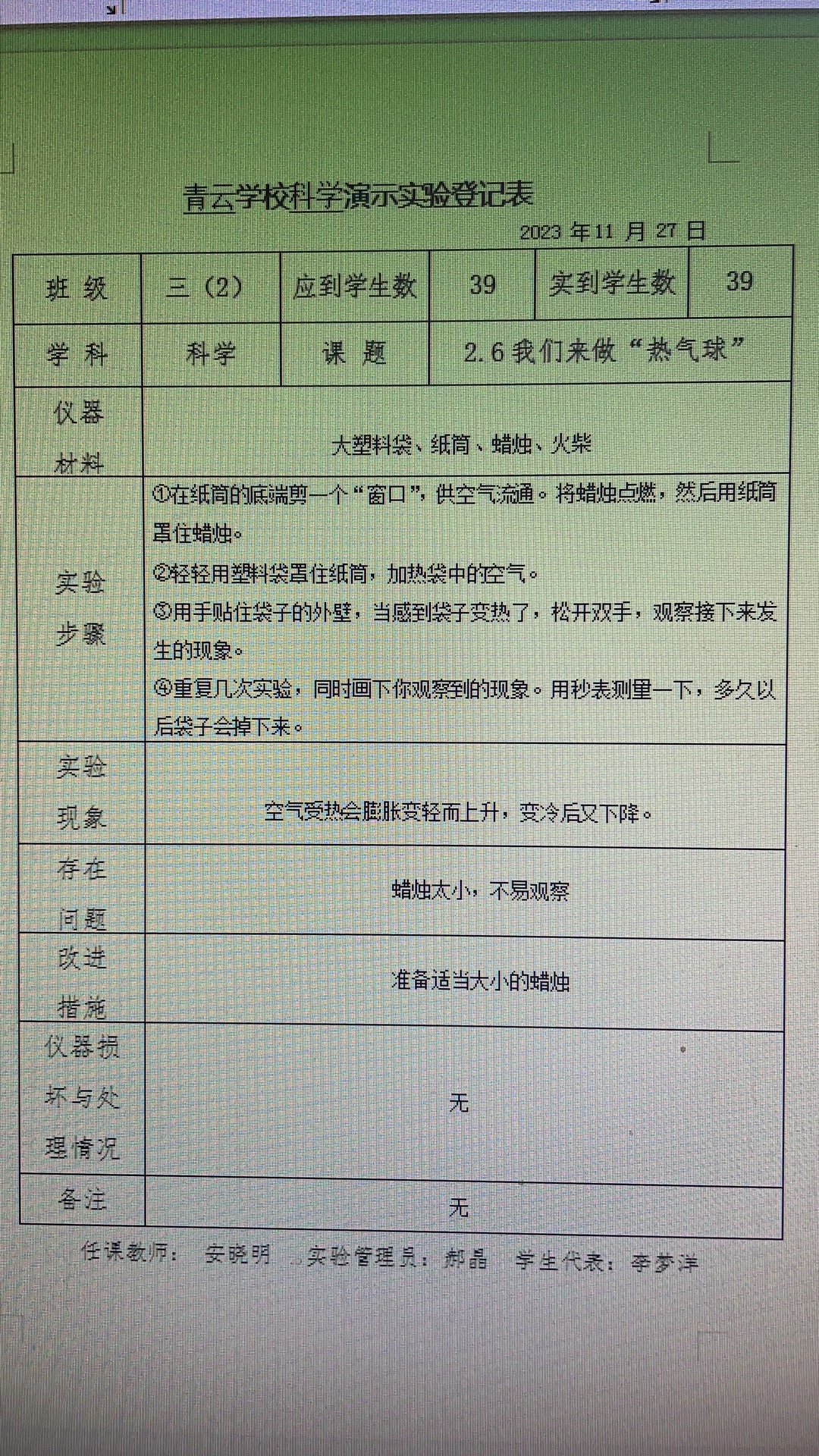 实验登记表