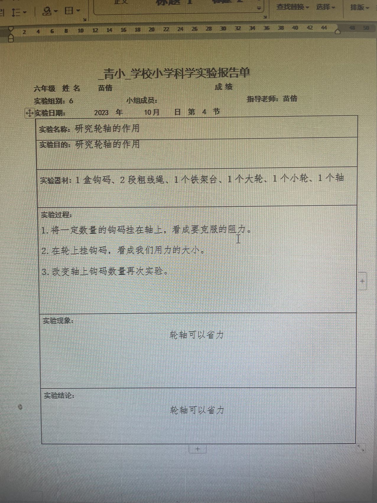 研究轮轴的作用