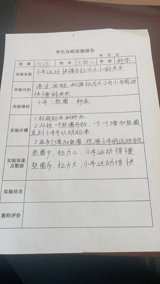 小车运动快慢与拉力大小关系