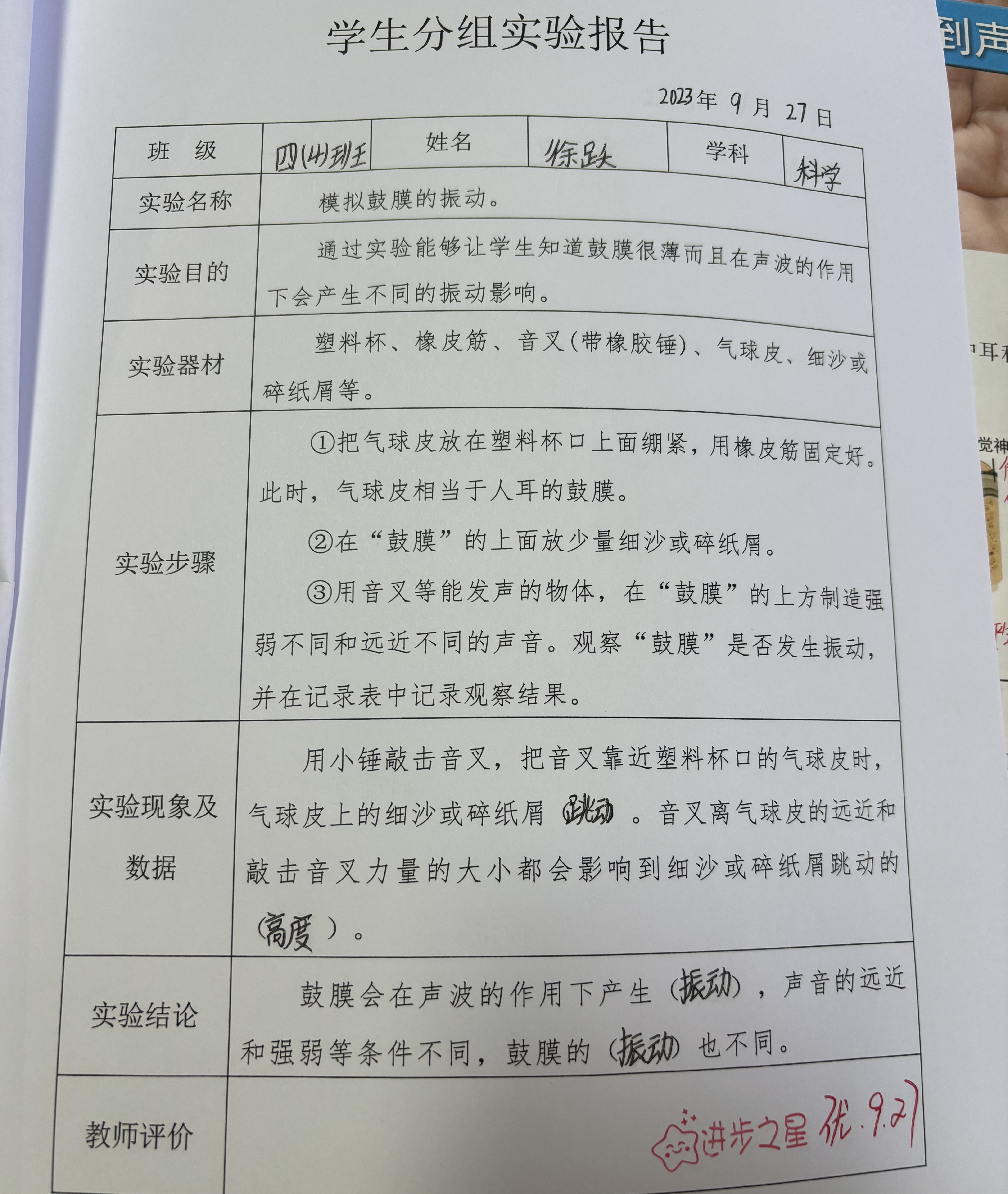 模拟鼓膜振动实验