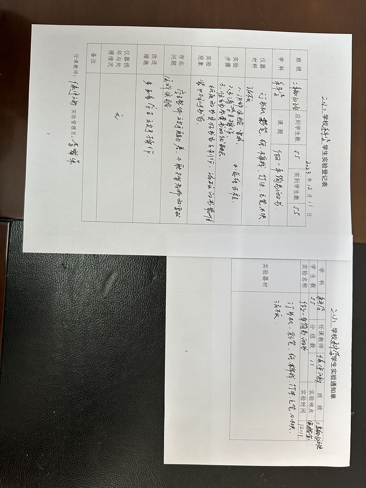 实验登记表