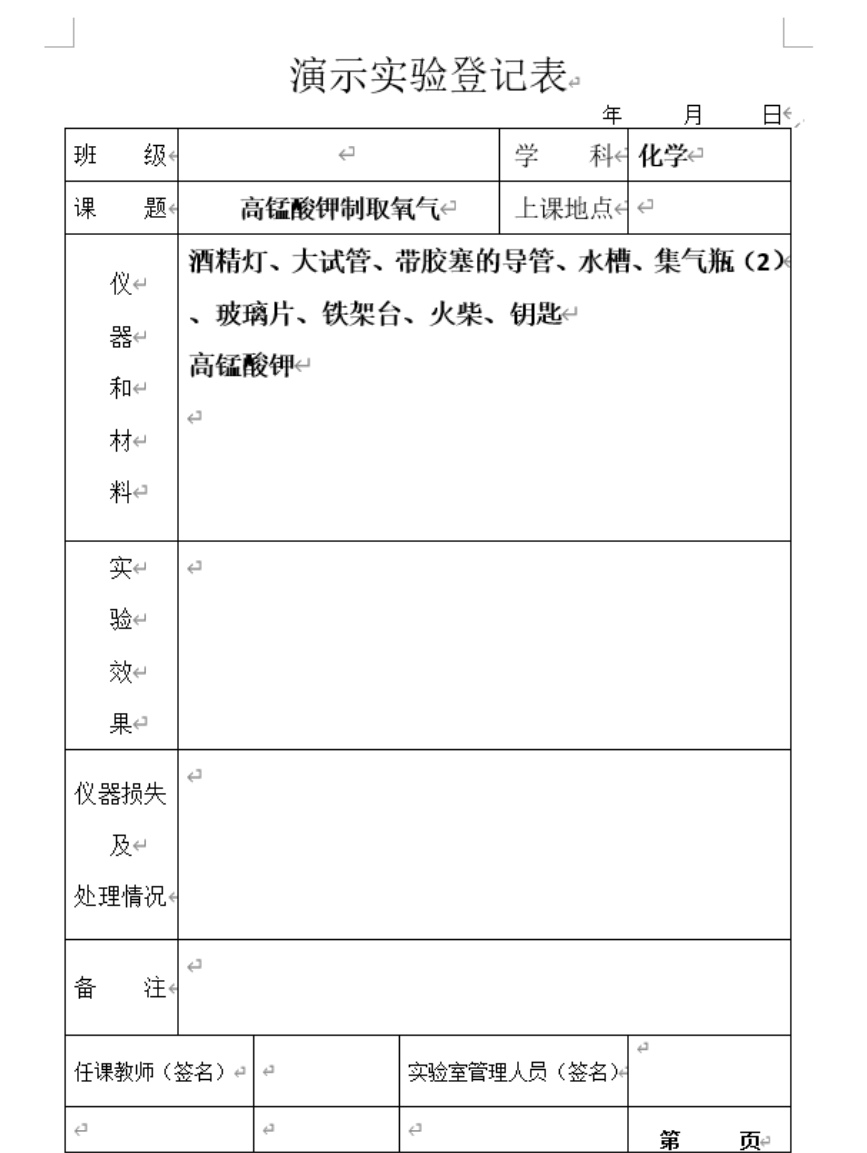 实验登记表