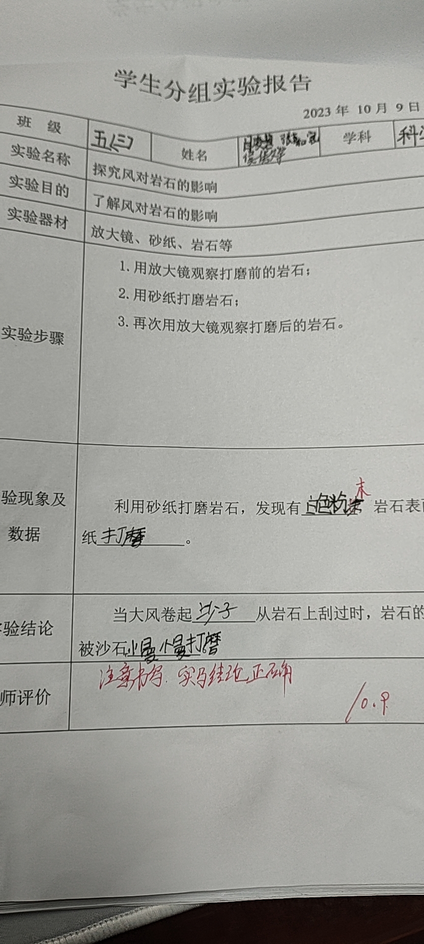 探究风对岩石的影响