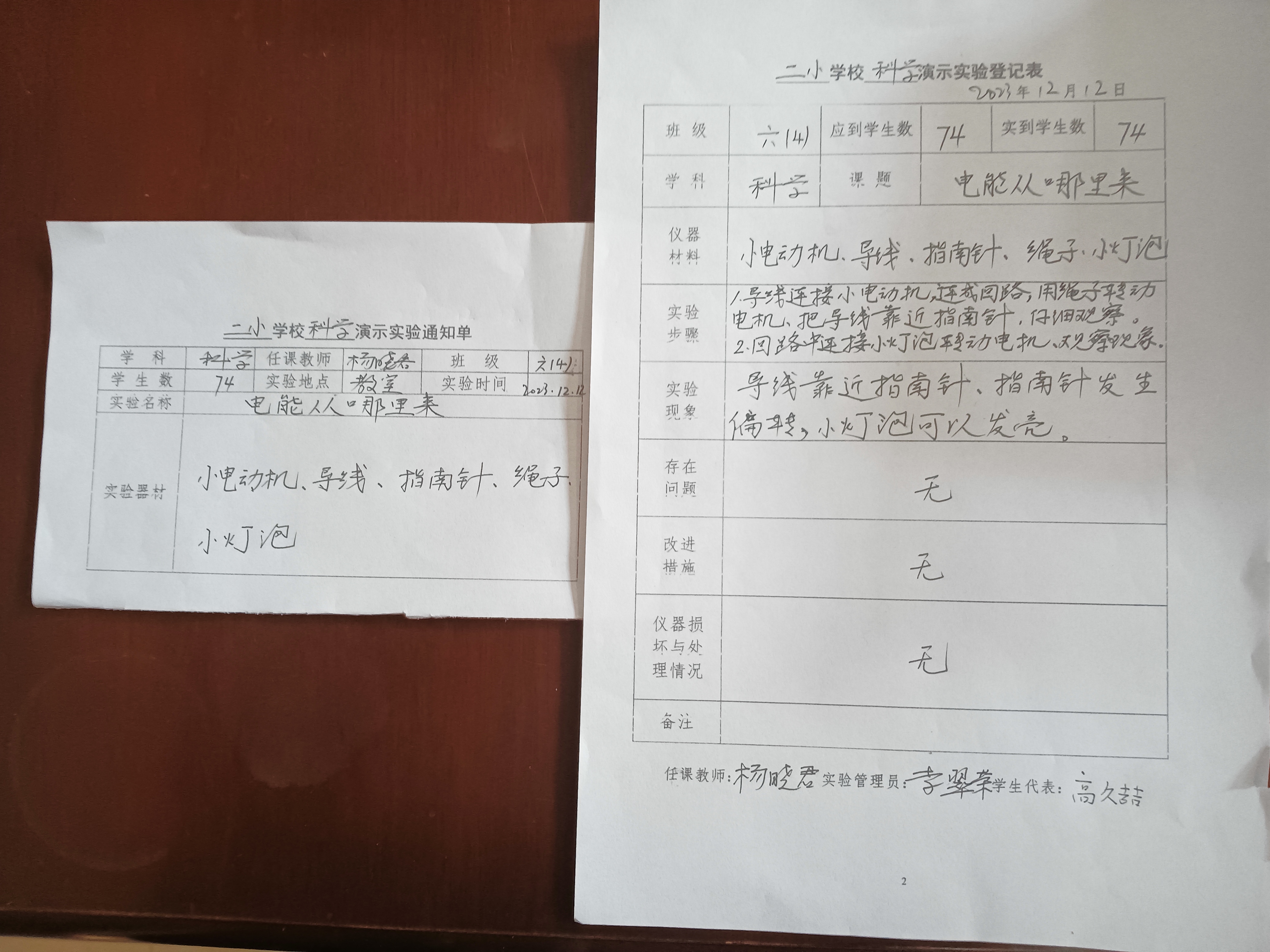 实验登记表