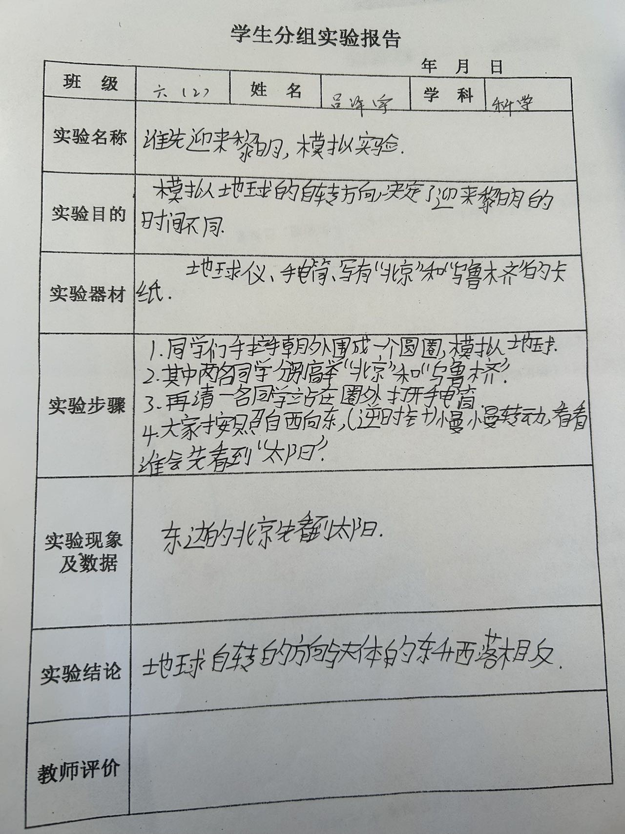 六年级科学