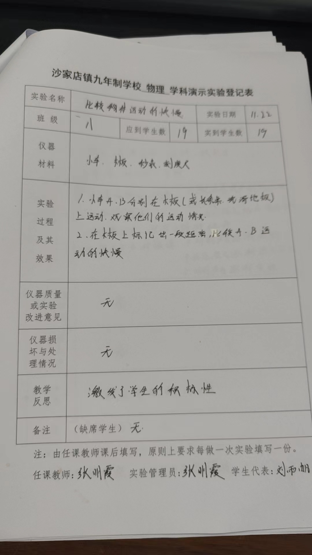 实验登记表
