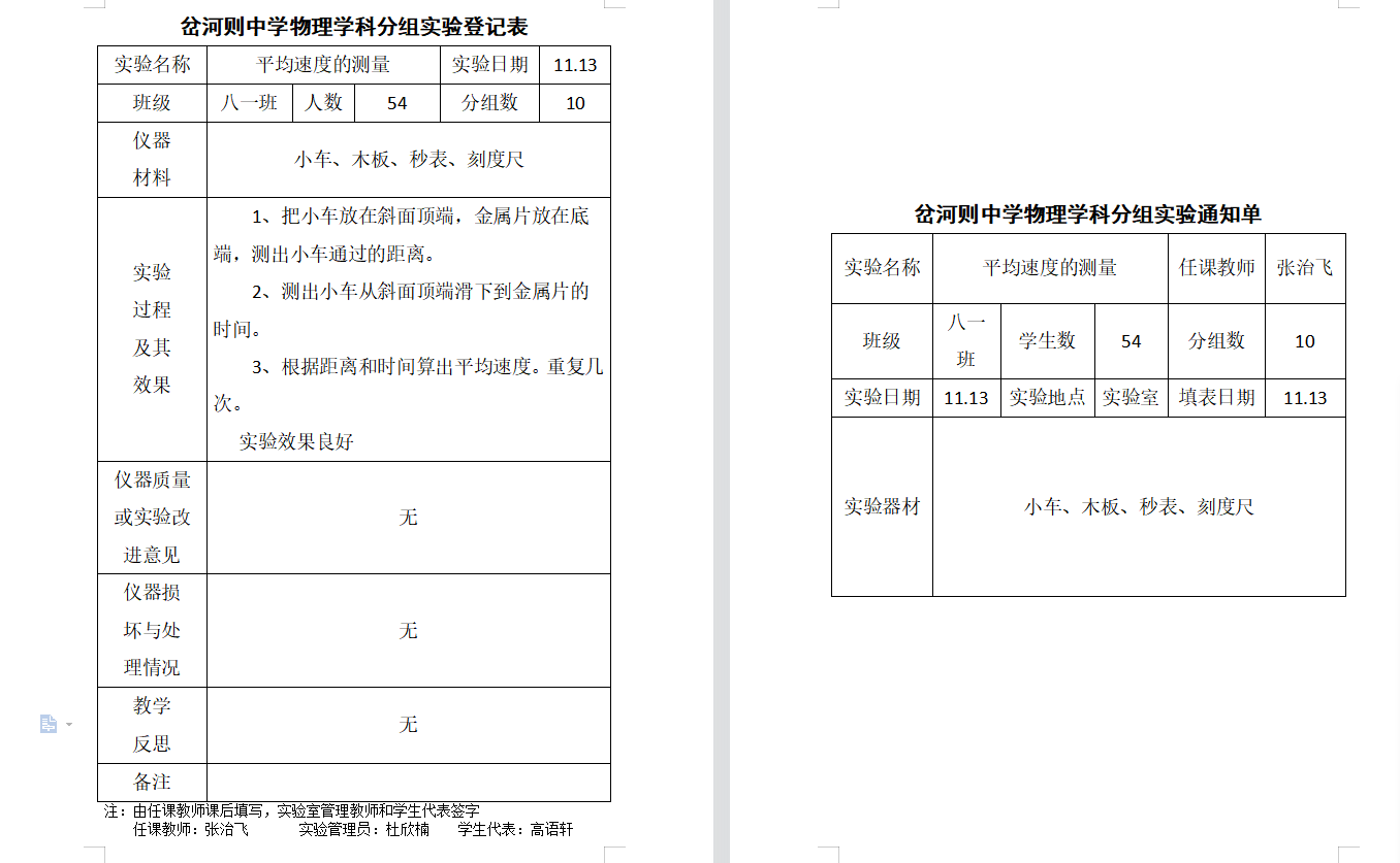 实验登记表