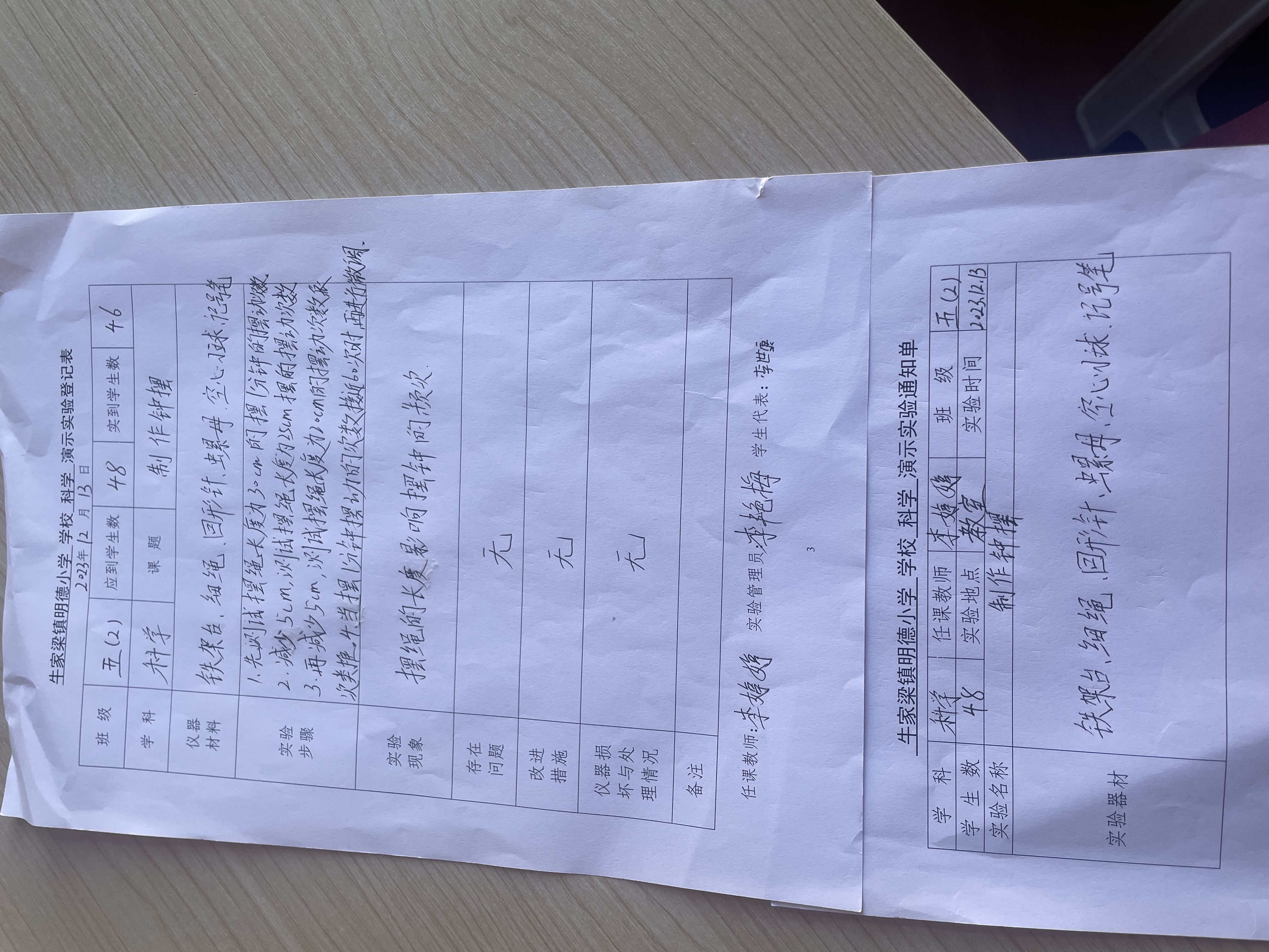 实验登记表