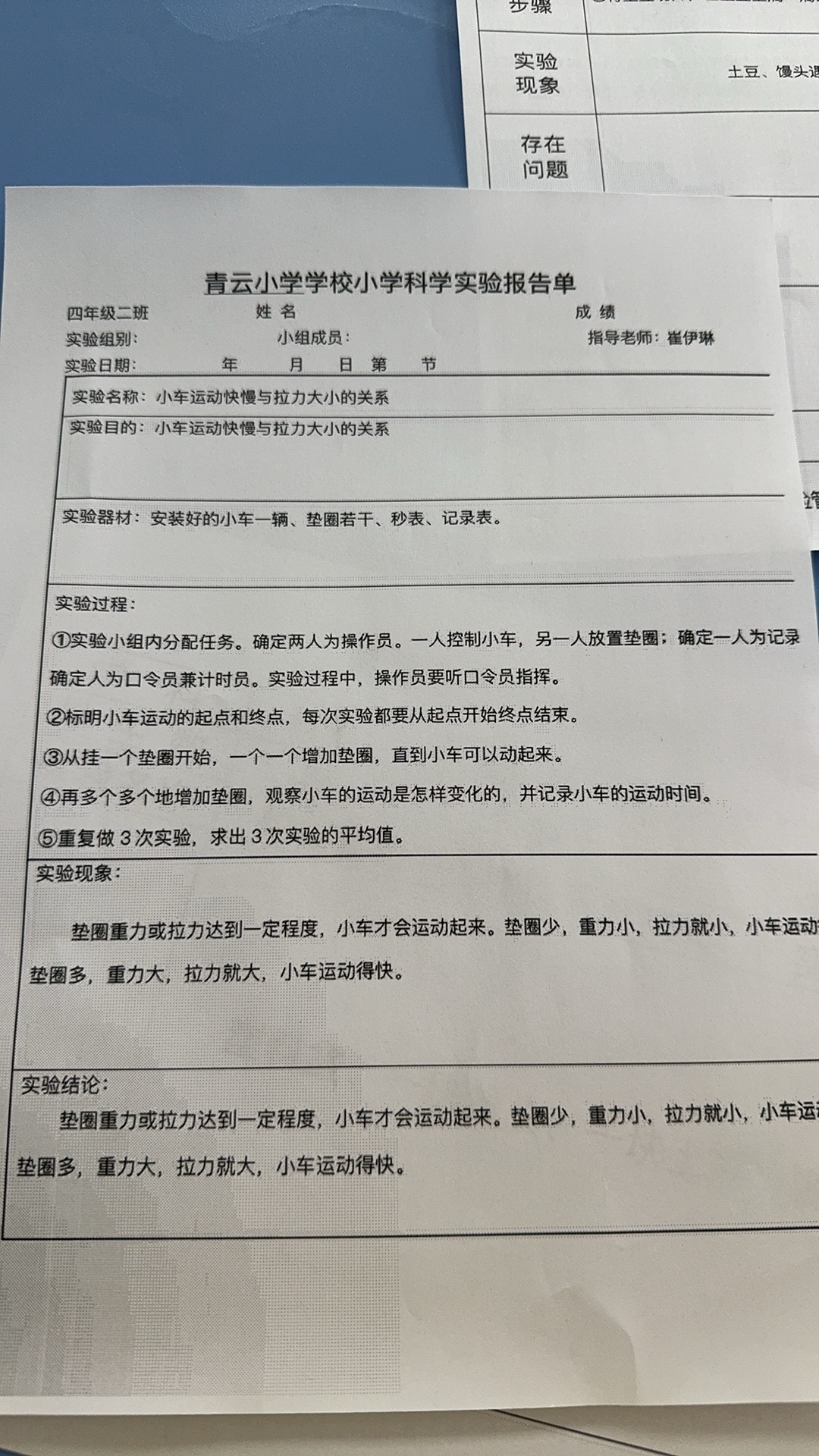 上册-第三章>第一节>3.1小车运动快慢与拉力大小的关系