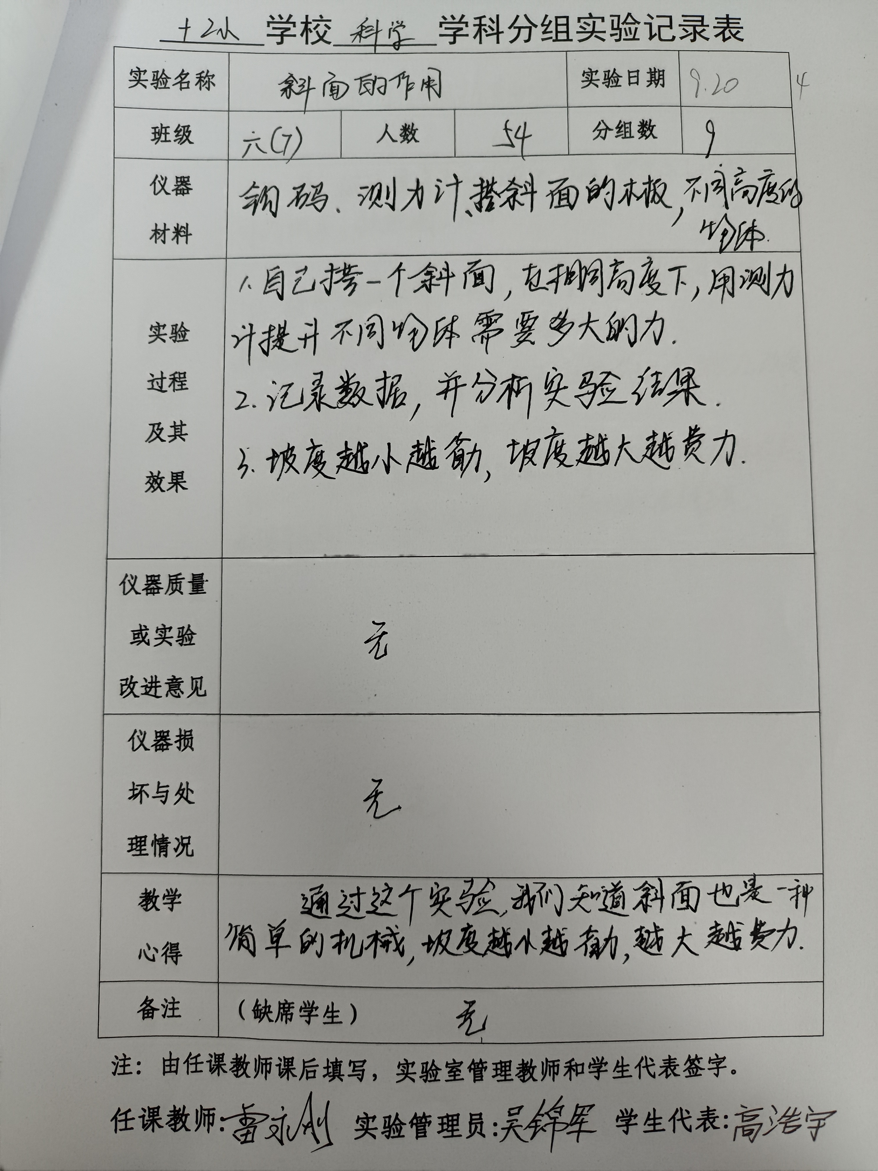 实验登记表