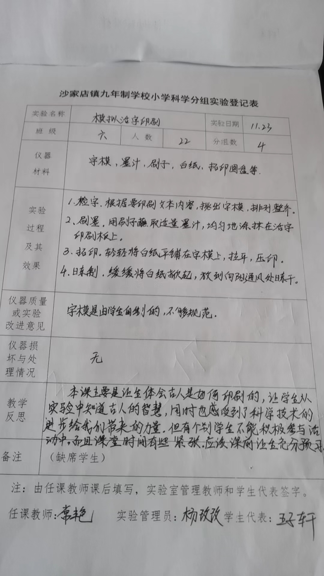 实验登记表
