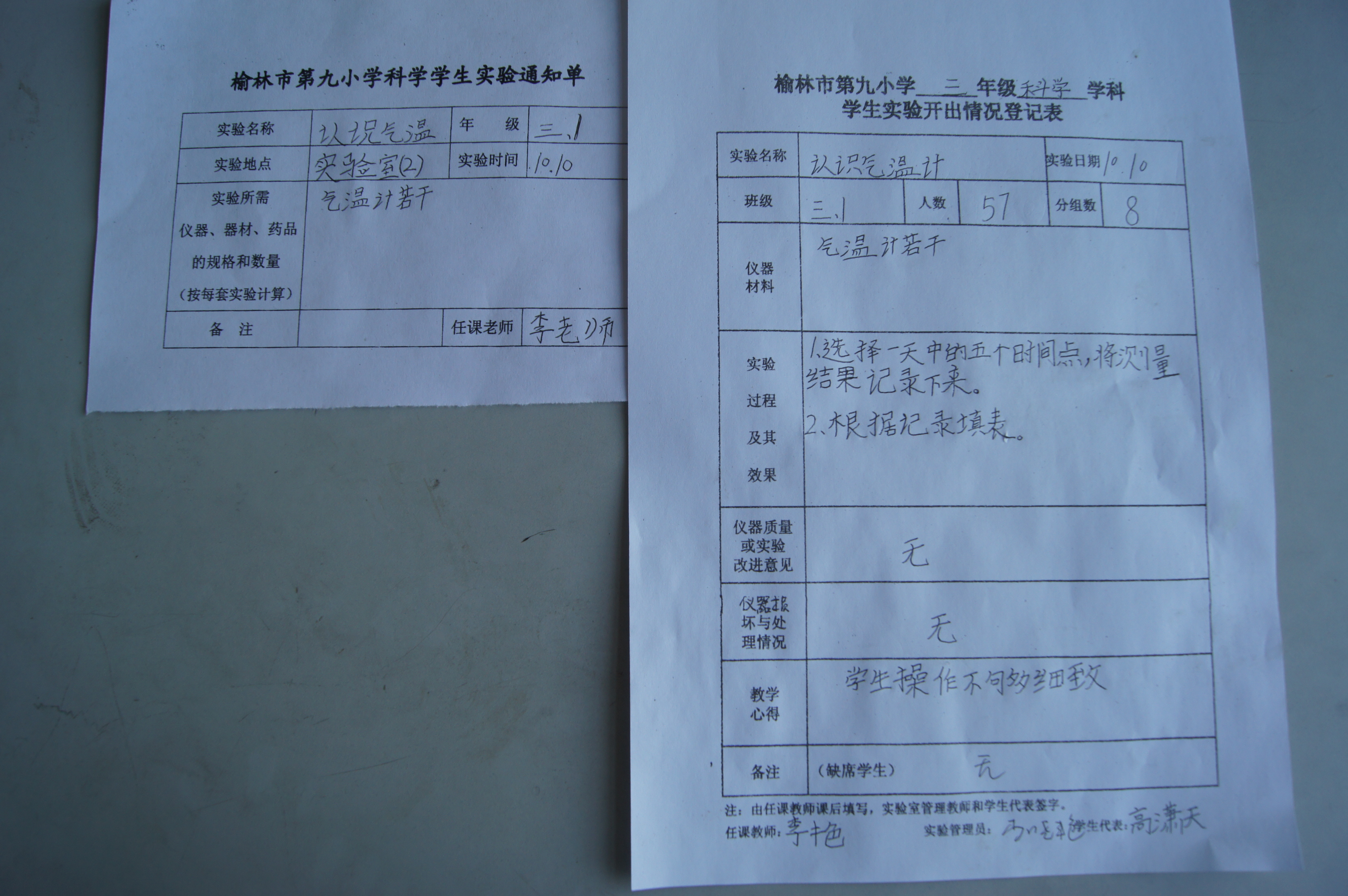 实验登记表