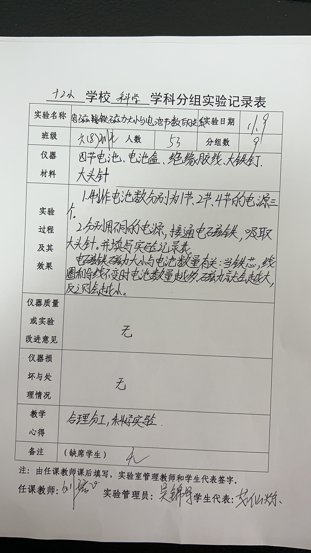 上册-第三章>第四节>3.4电磁铁磁力大小与电池节数的关系