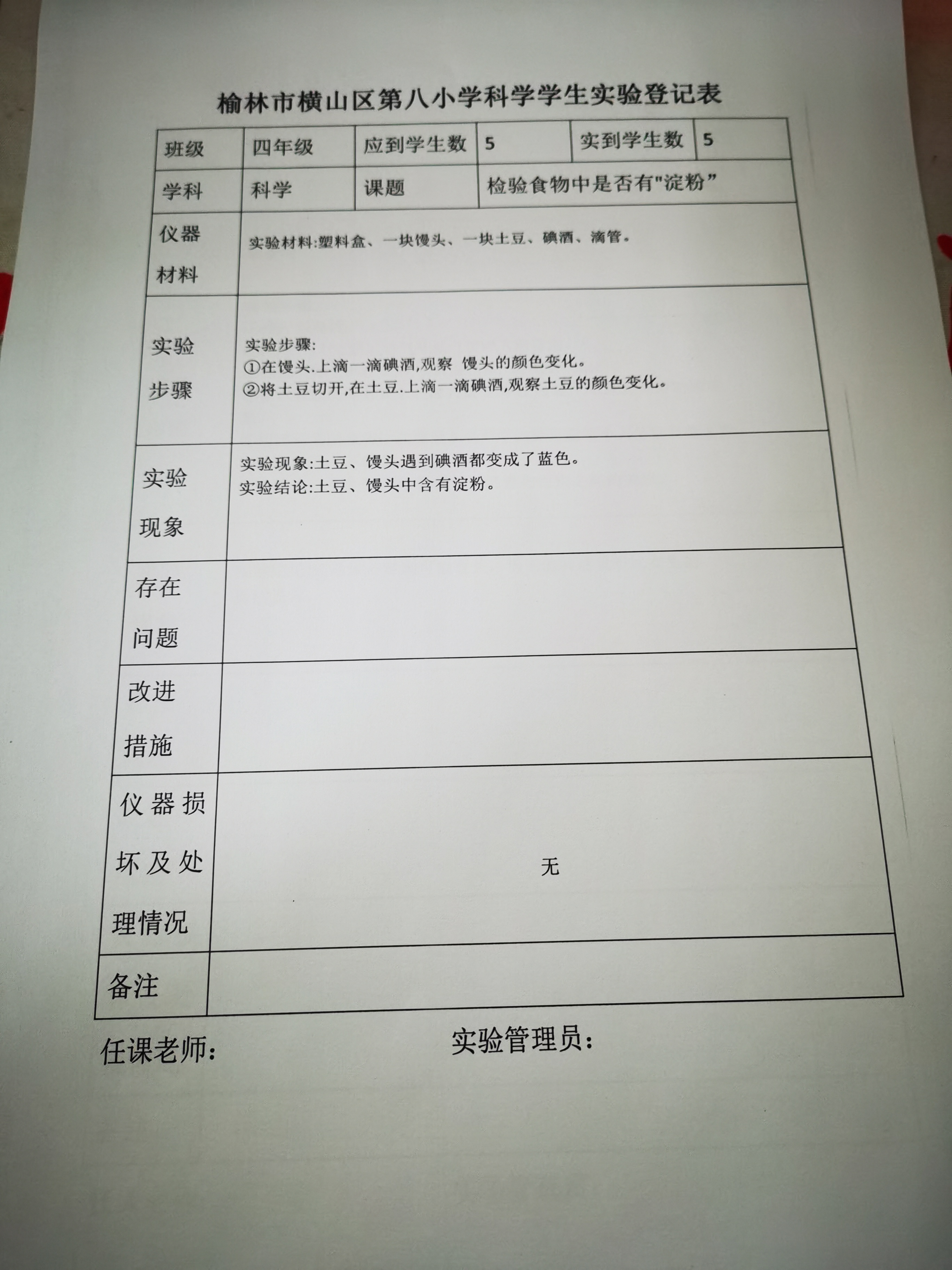 实验登记表