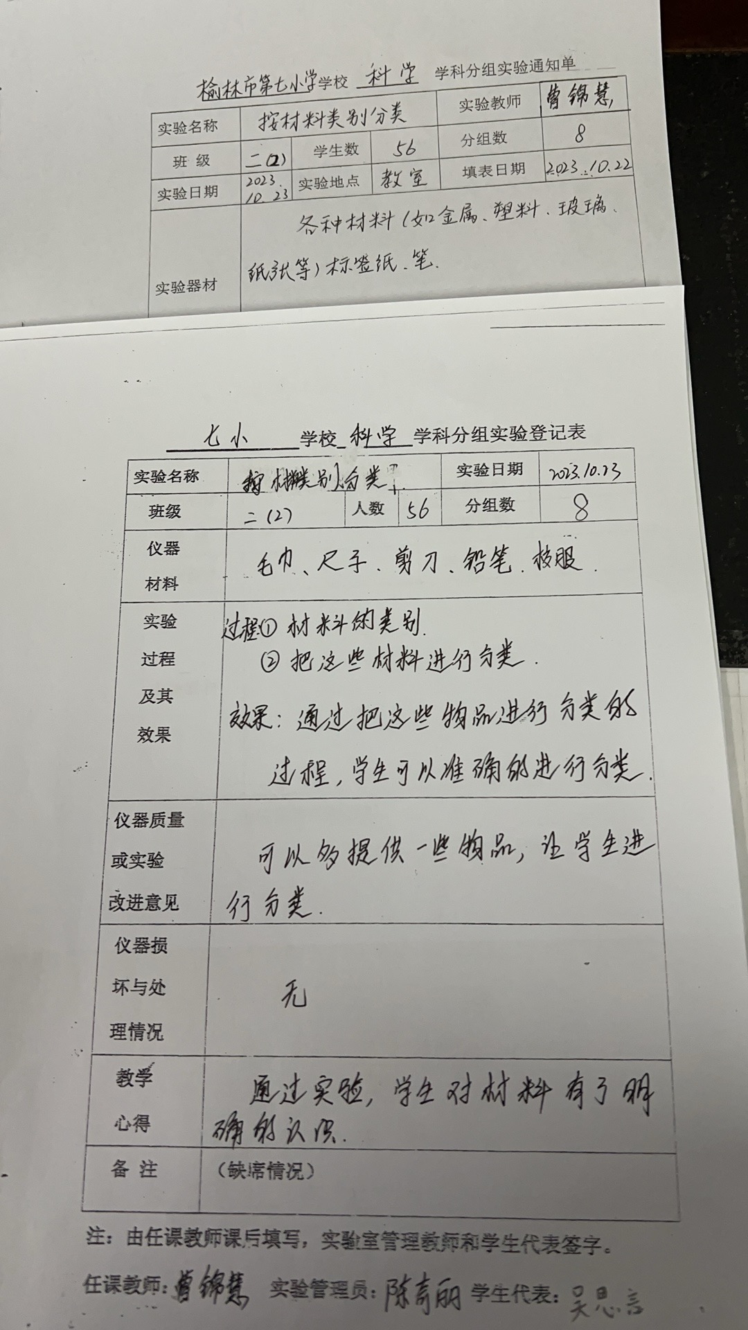 实验登记表