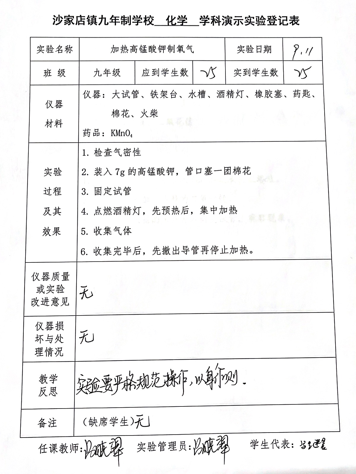 实验登记表