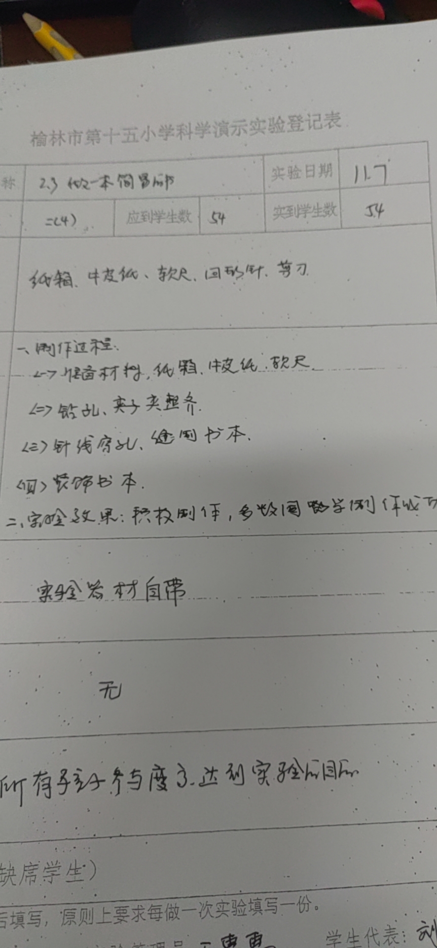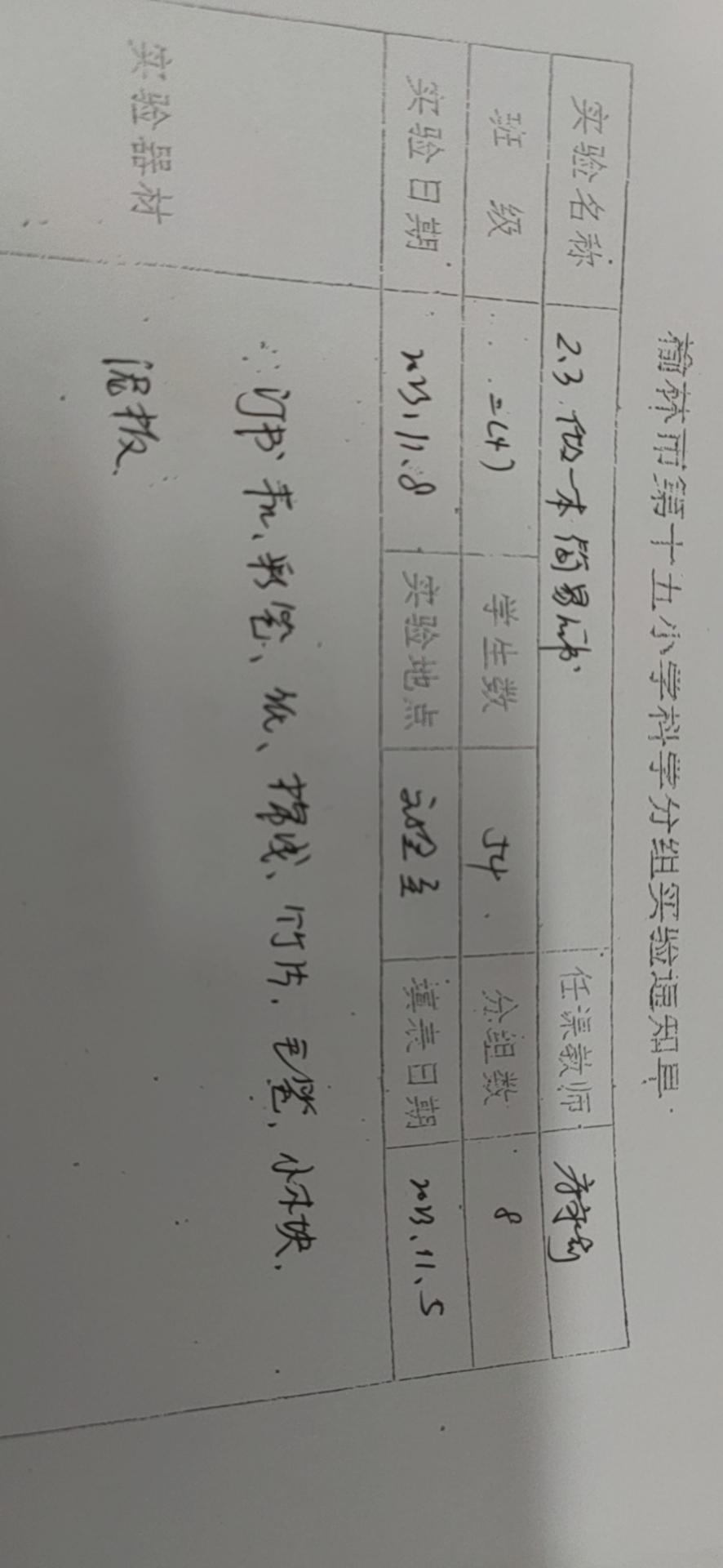 实验登记表