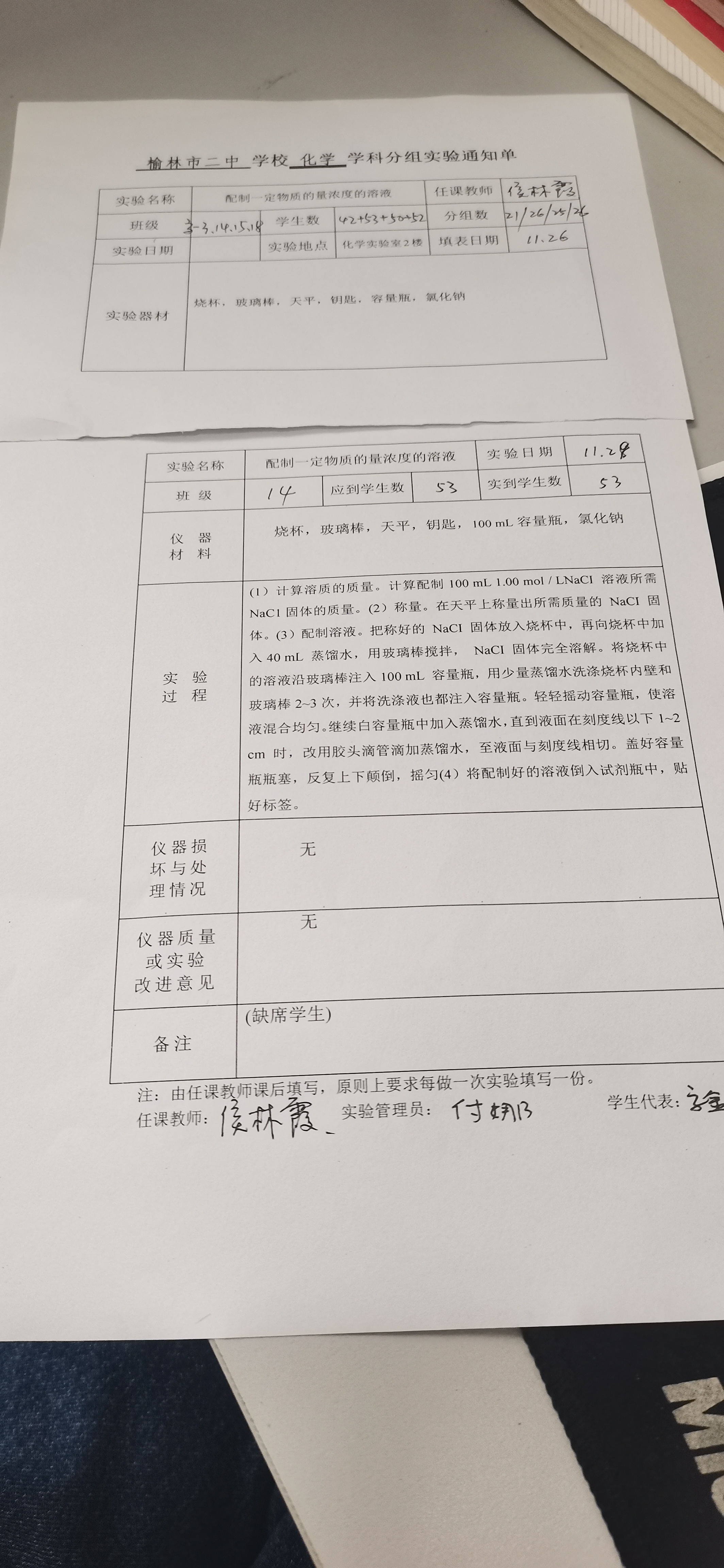 实验登记表