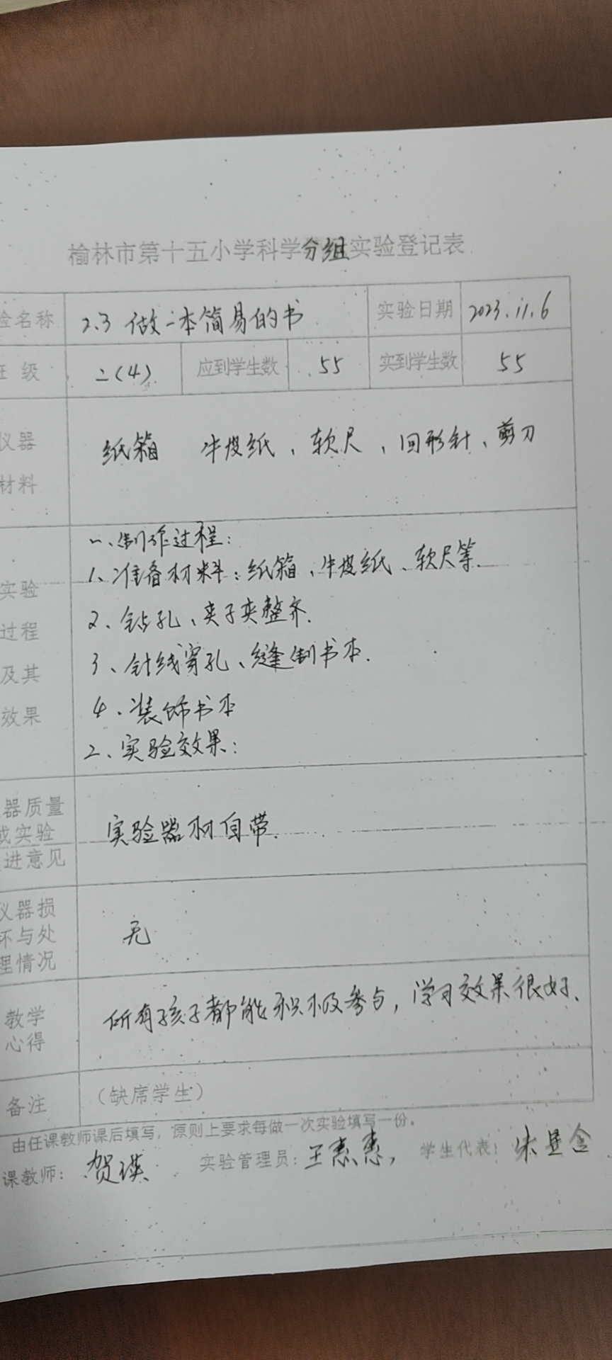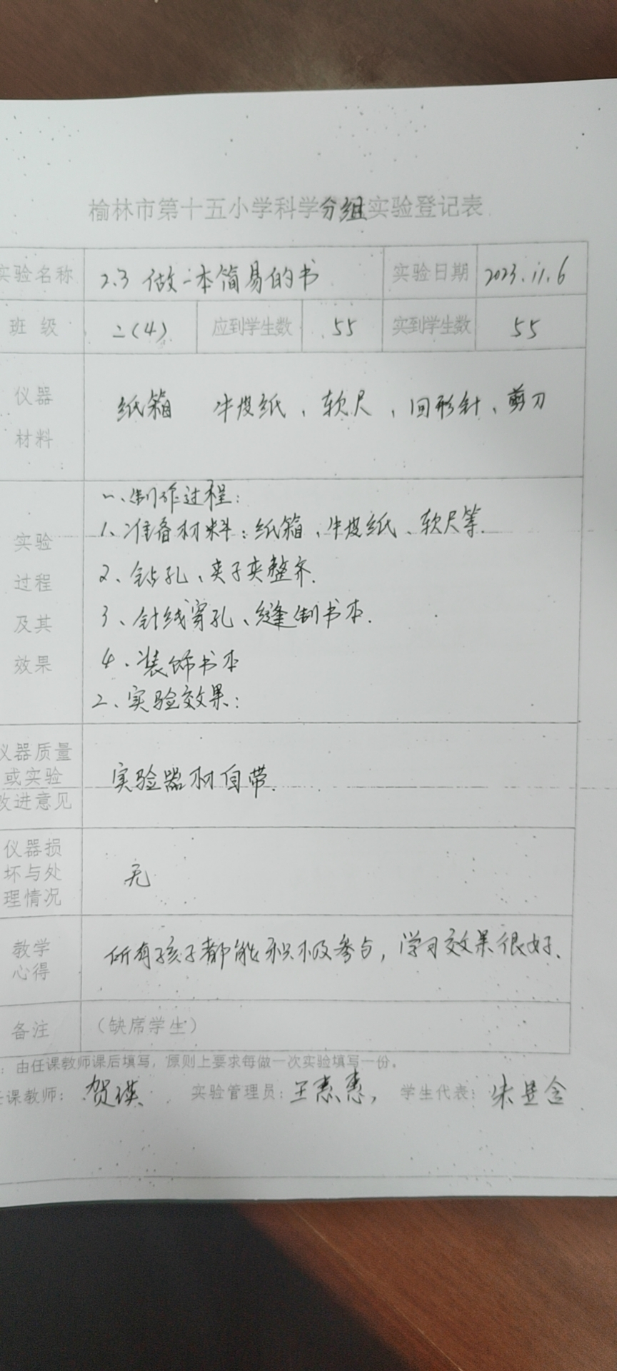 实验登记表