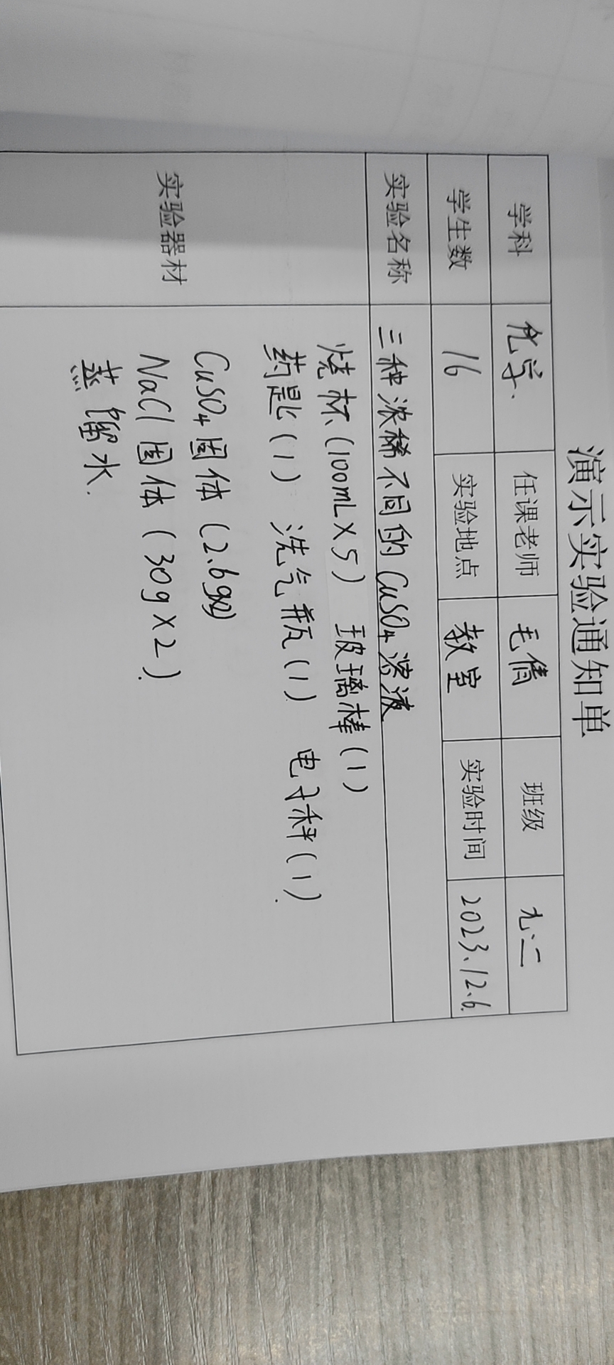 实验登记表