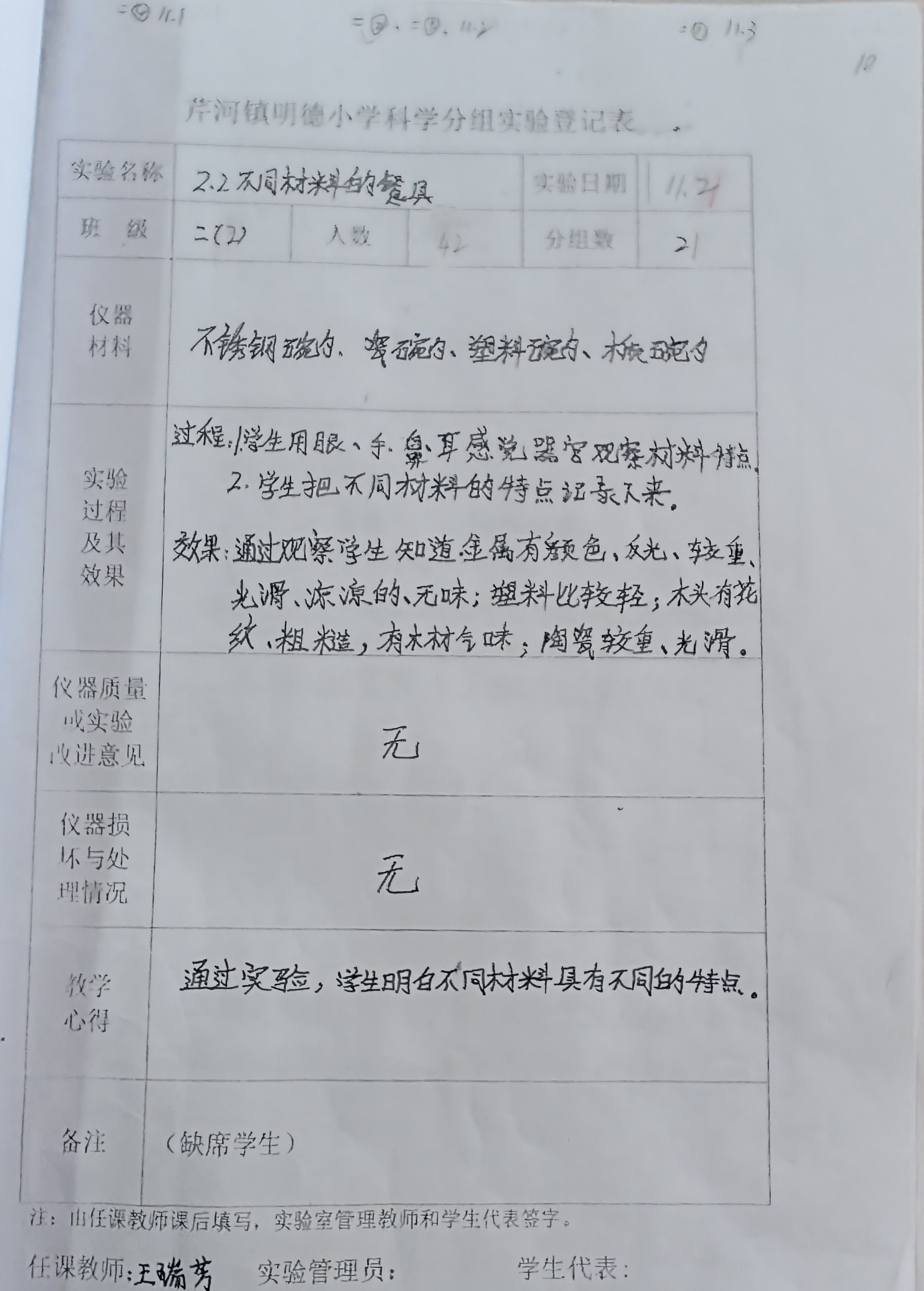实验登记表