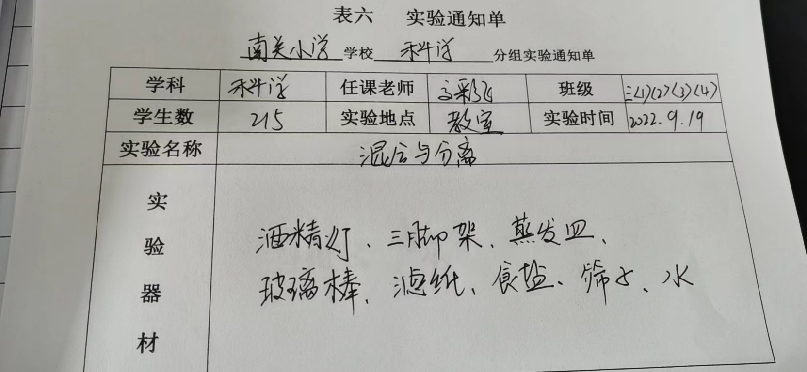 实验登记表
