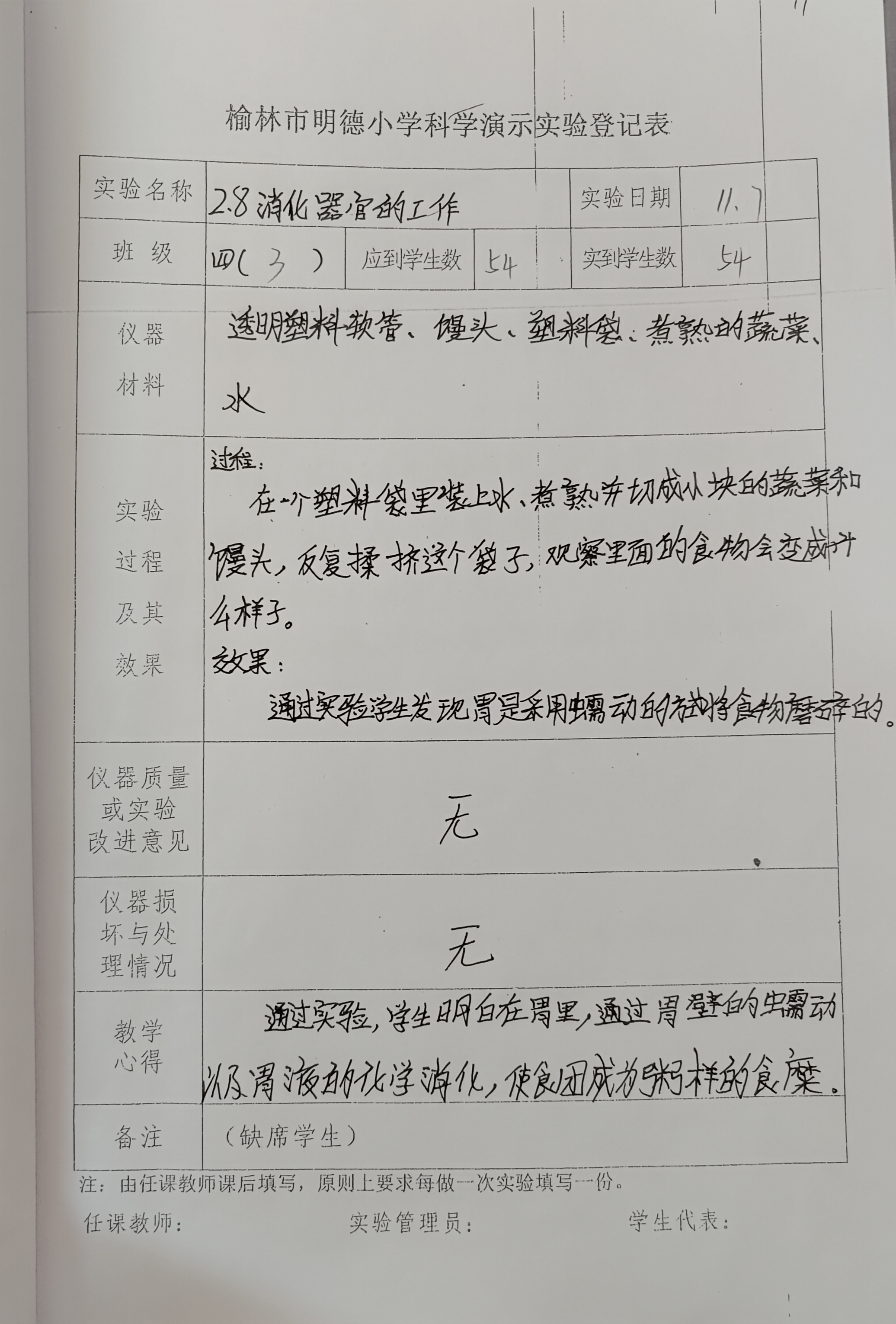 实验登记表