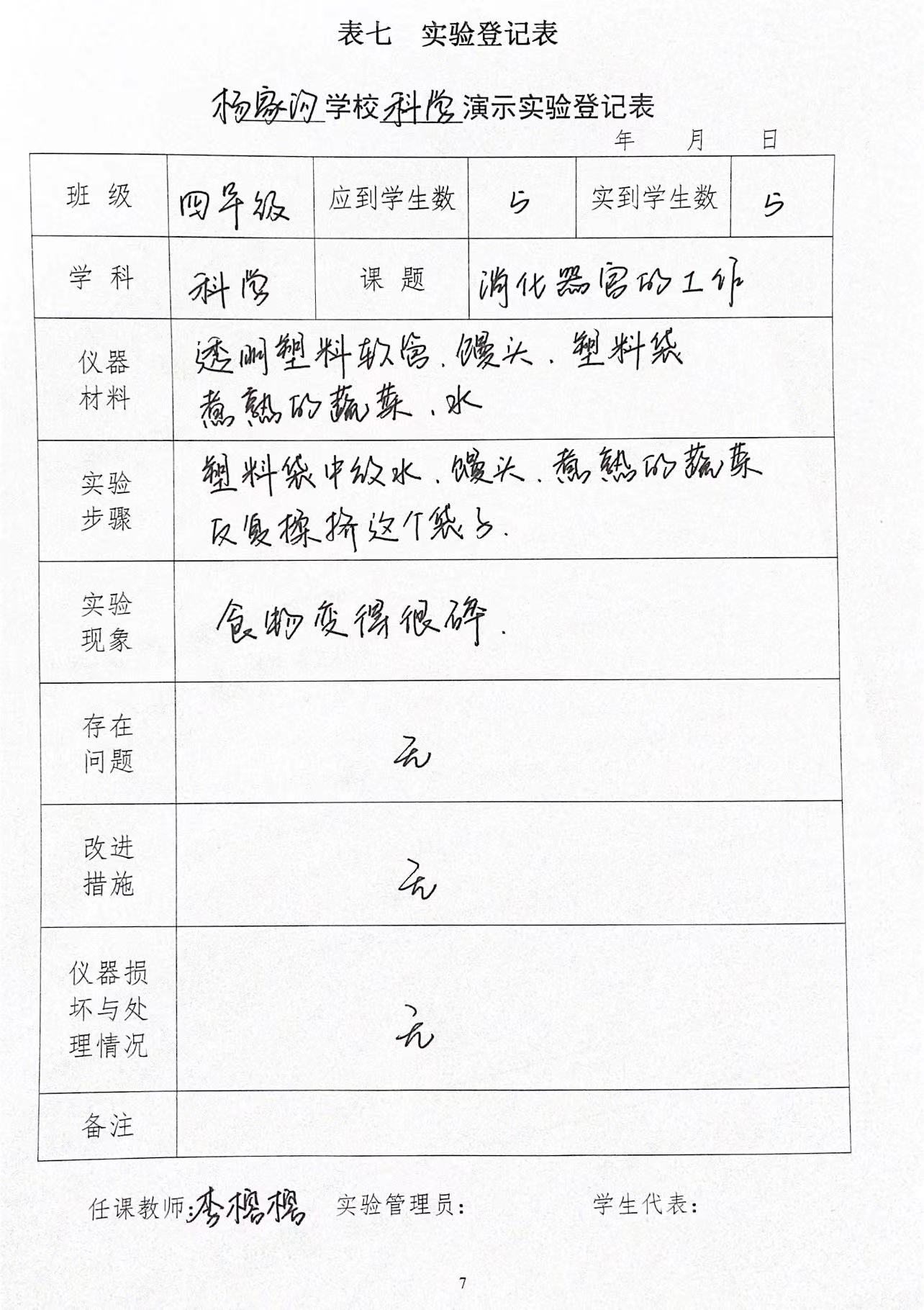 实验登记表