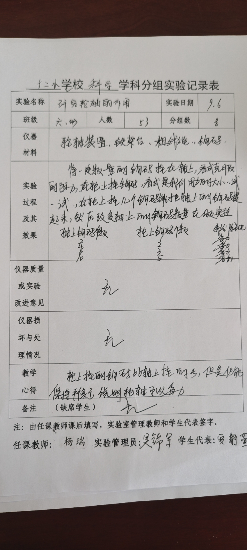 实验登记表