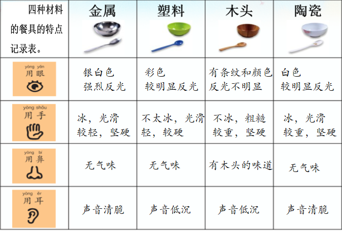 上册-第二章>第二节>不同材料的餐具