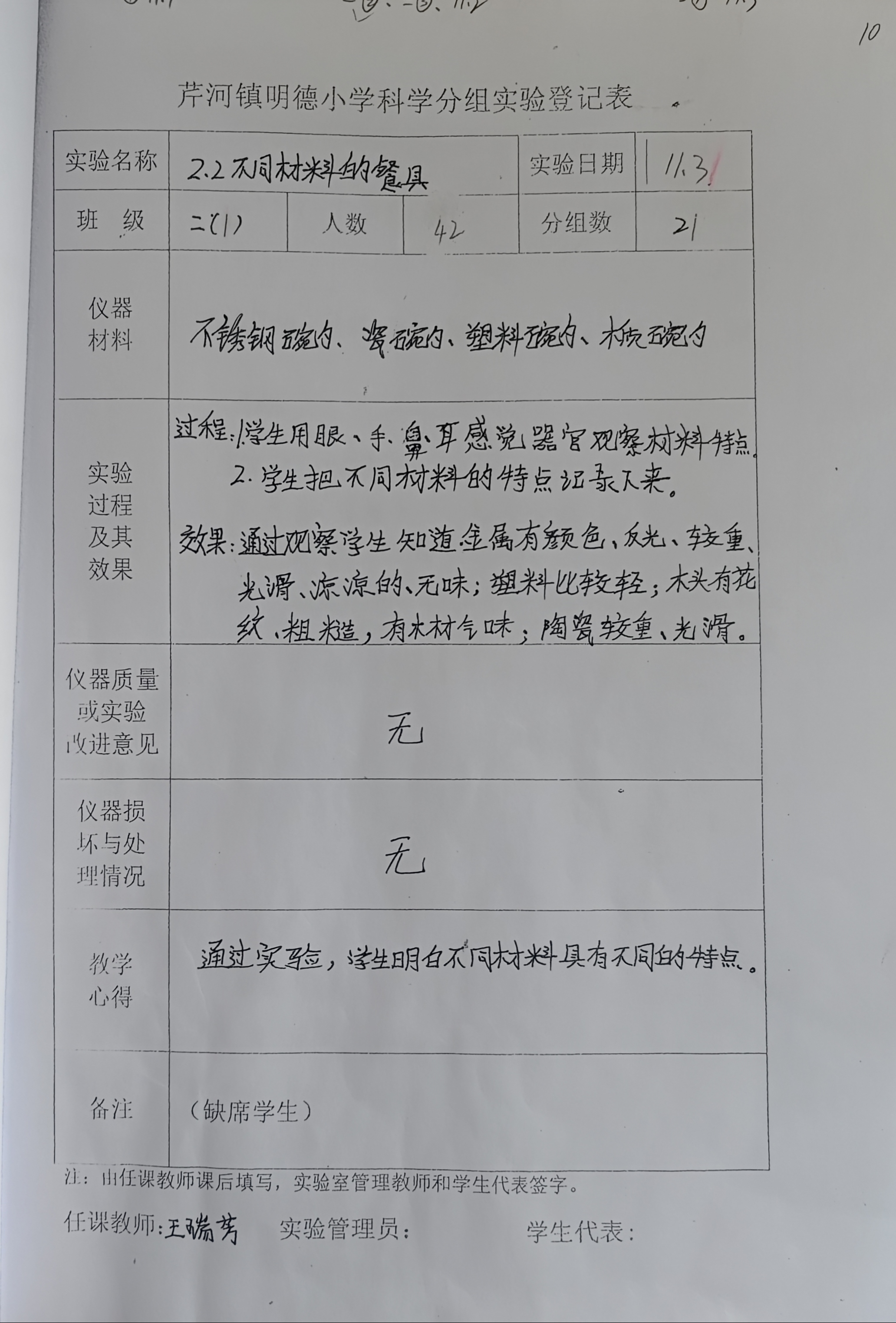 实验登记表