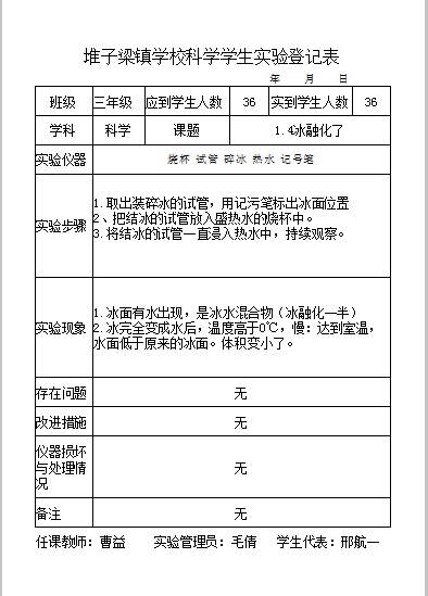 实验登记表