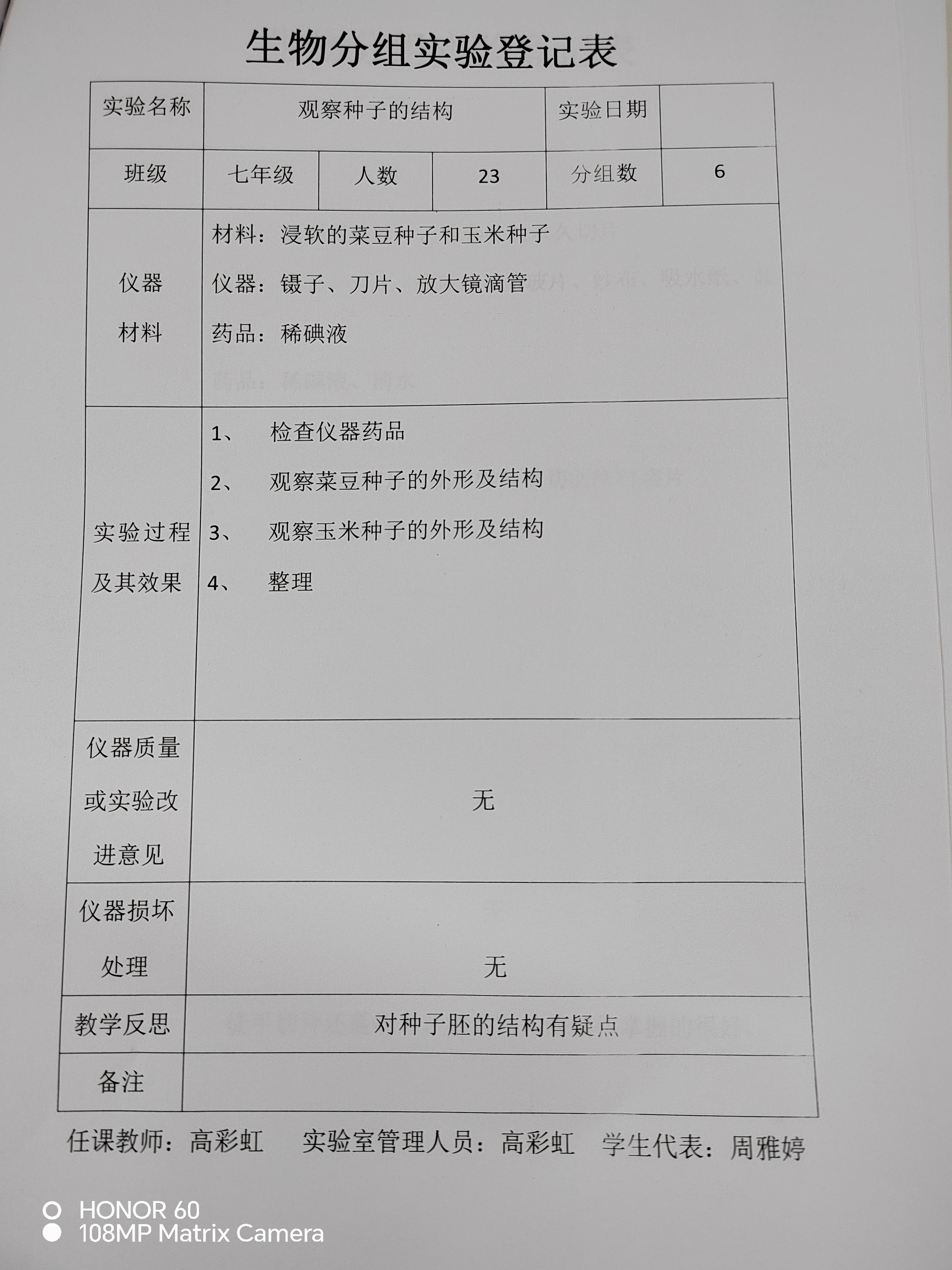 实验登记表