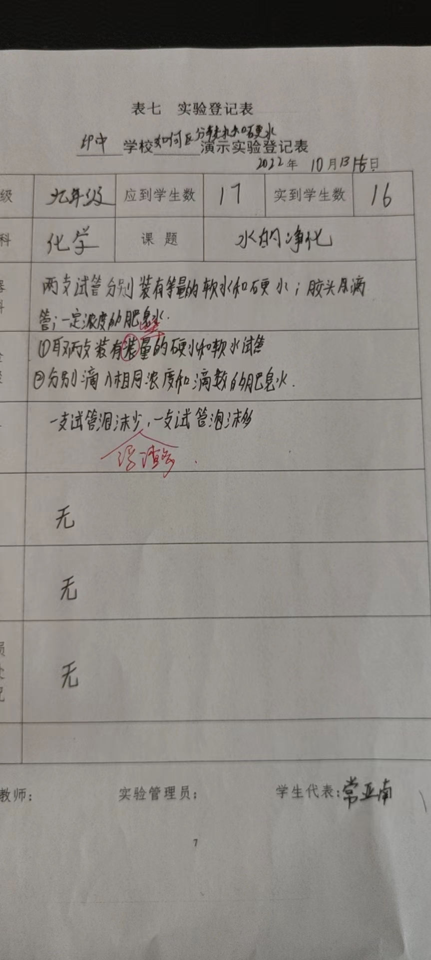 实验登记表