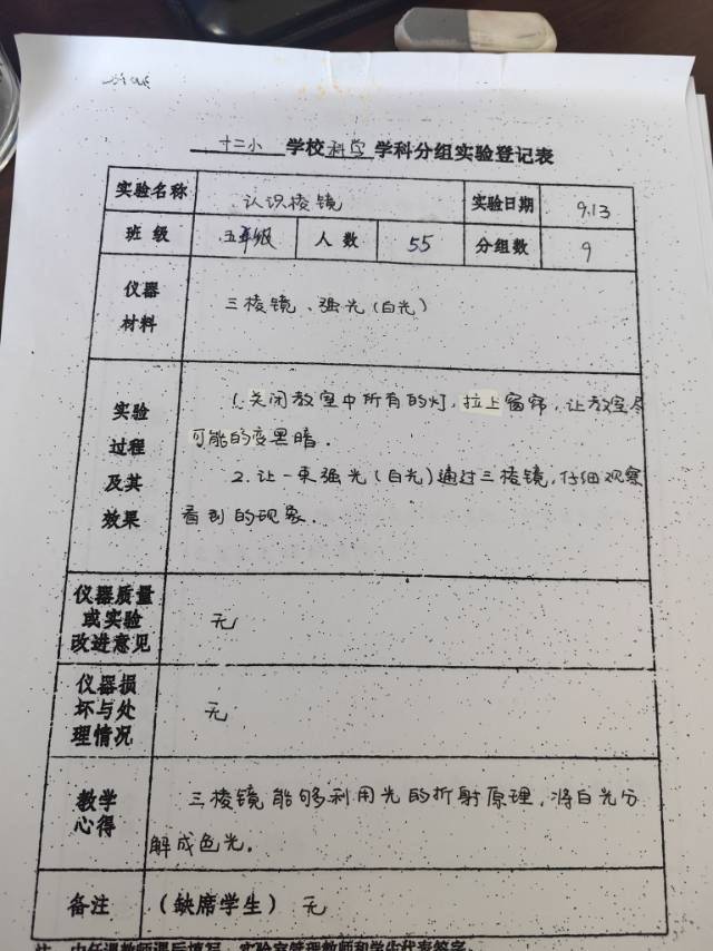 实验登记表
