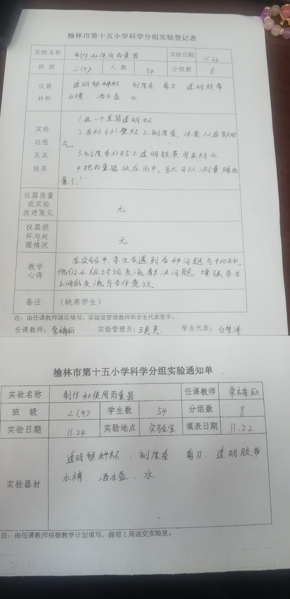 实验登记表