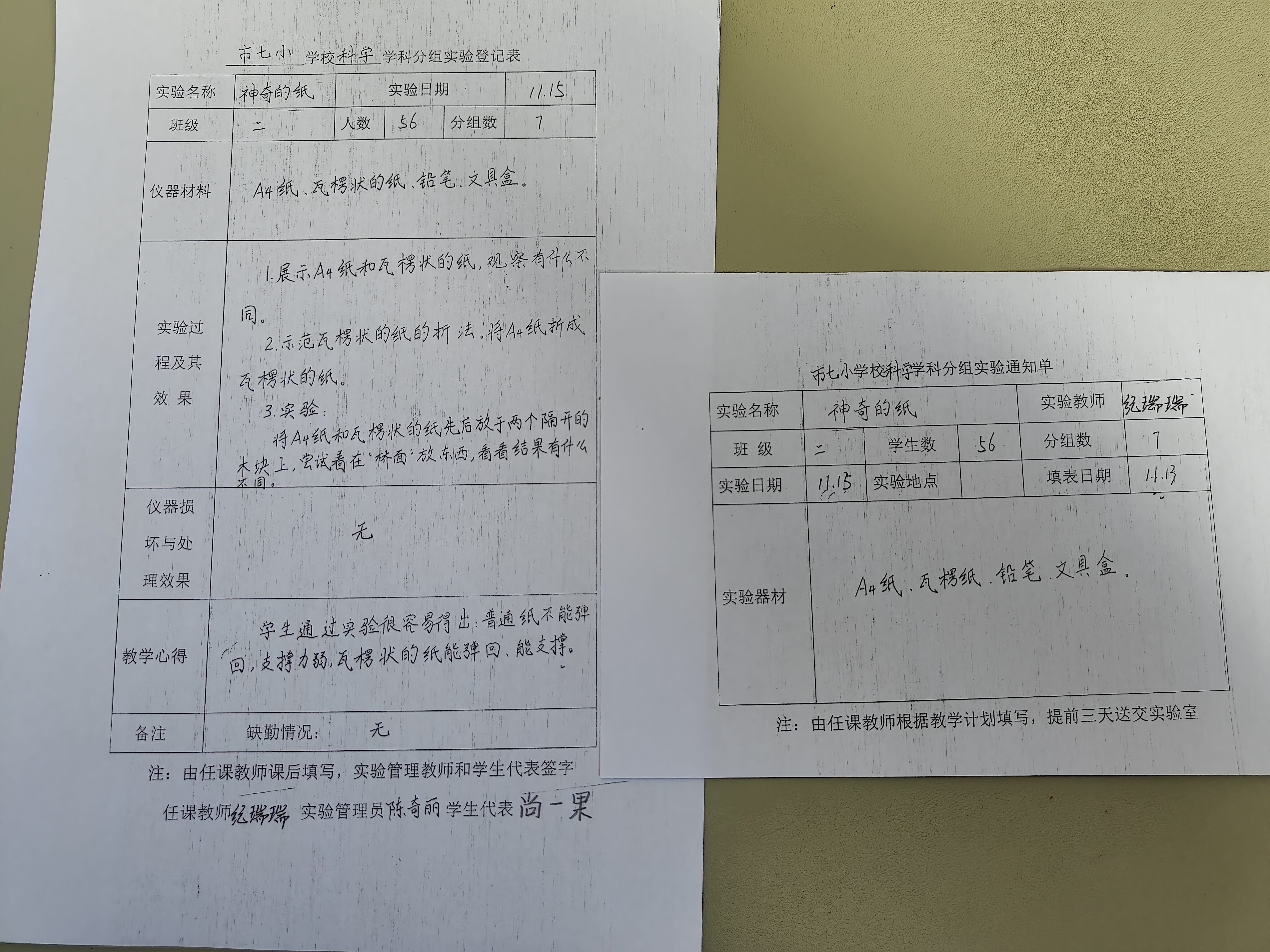 实验登记表