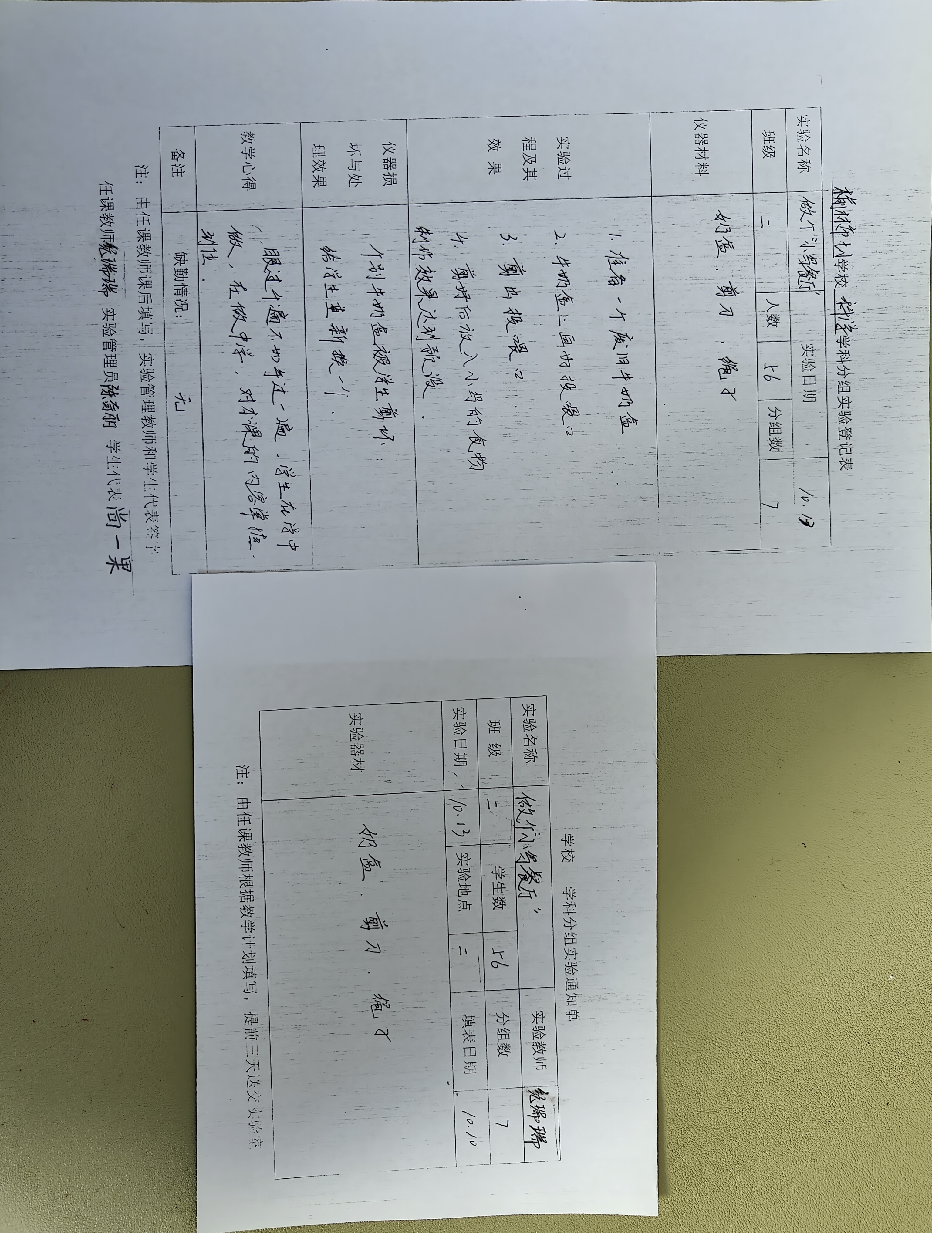 实验登记表