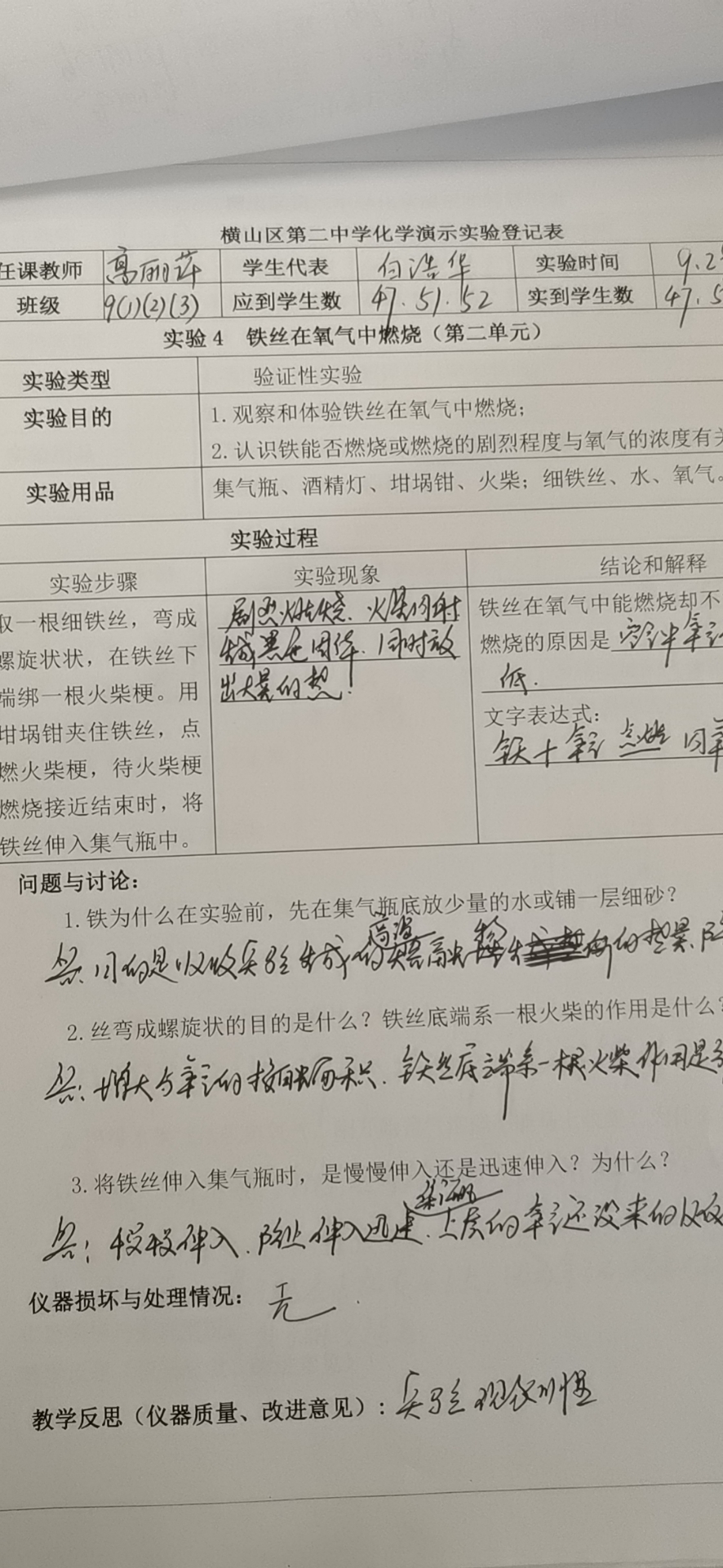 实验登记表