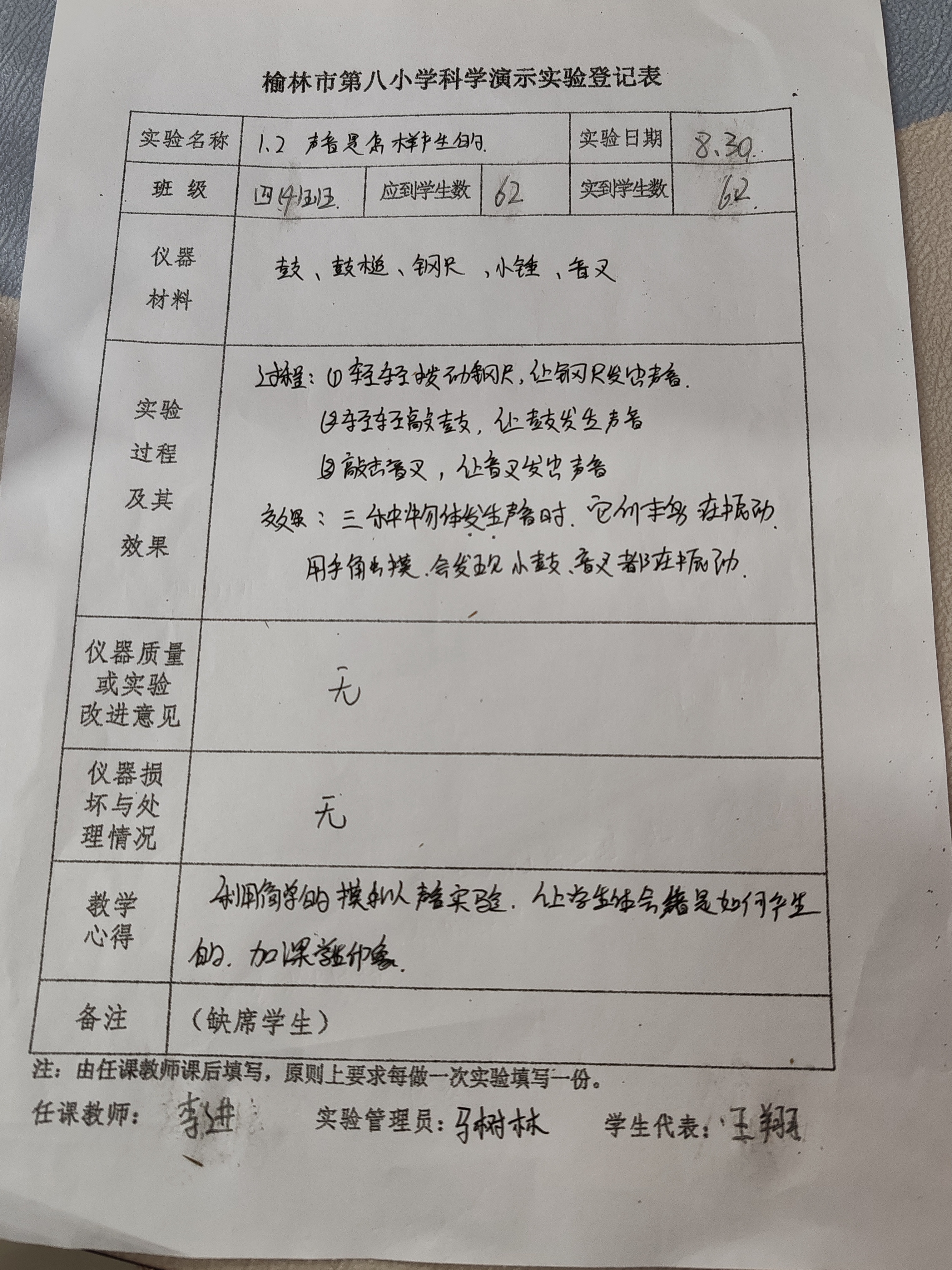 实验登记表