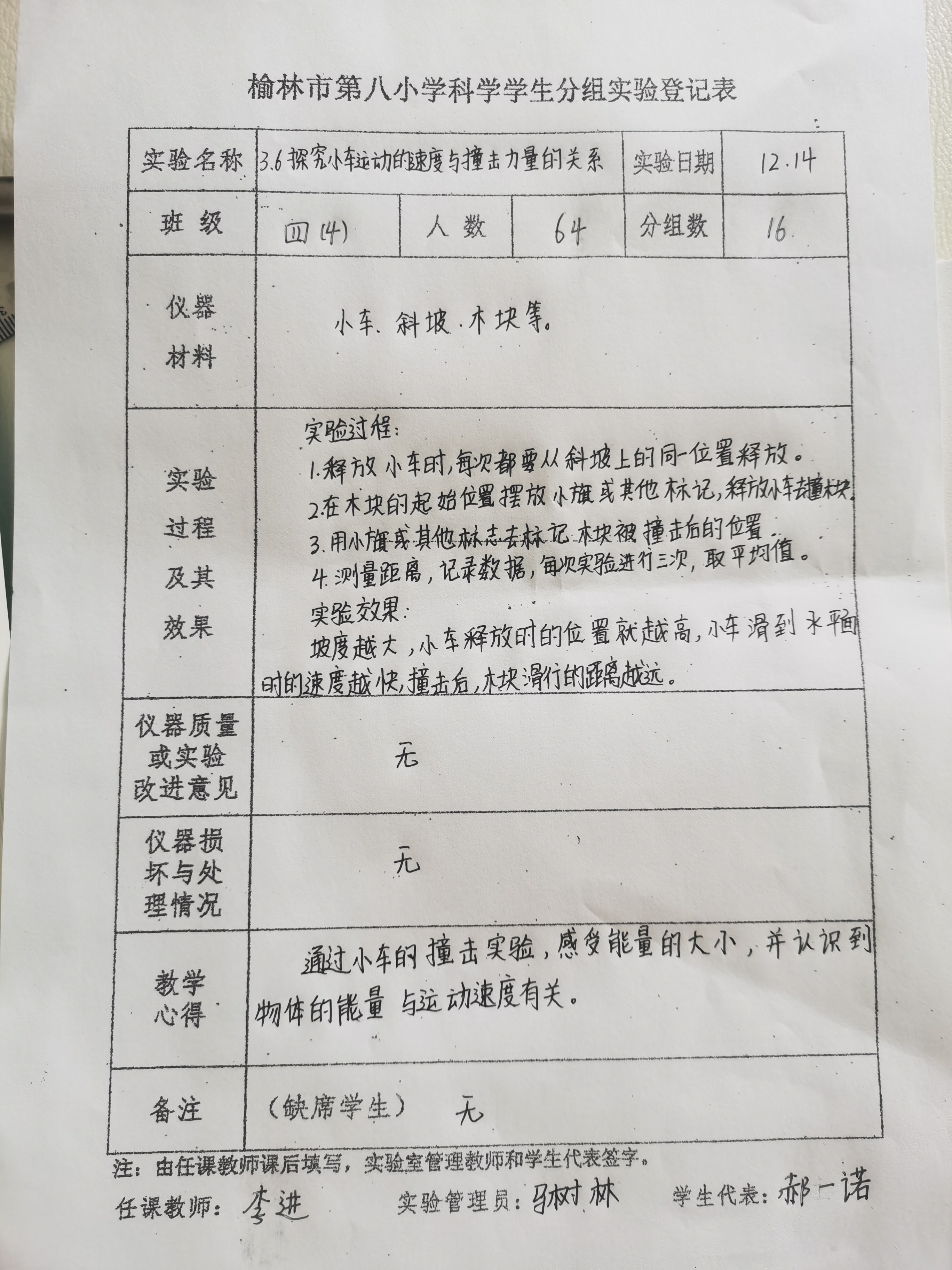 探究小车运动的速度与撞击力度的关系