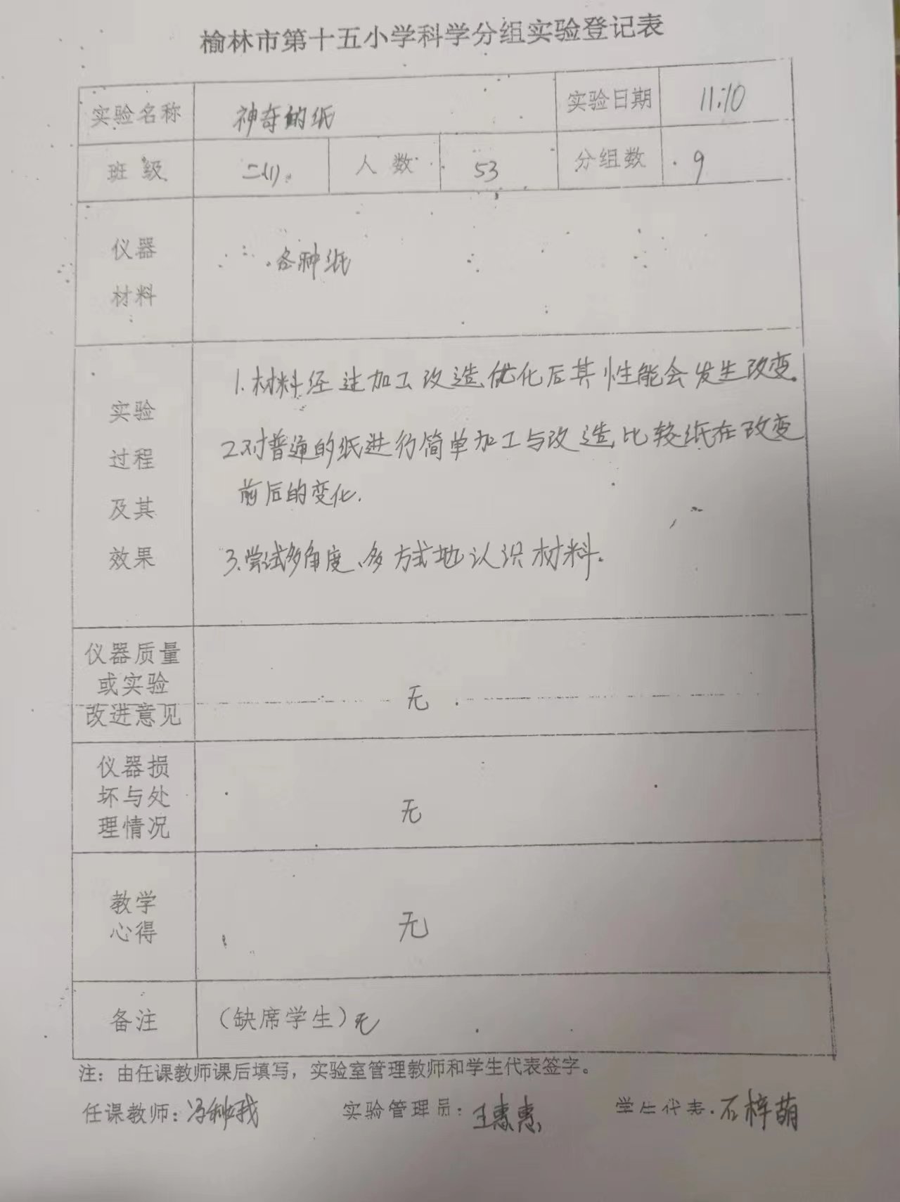 实验登记表