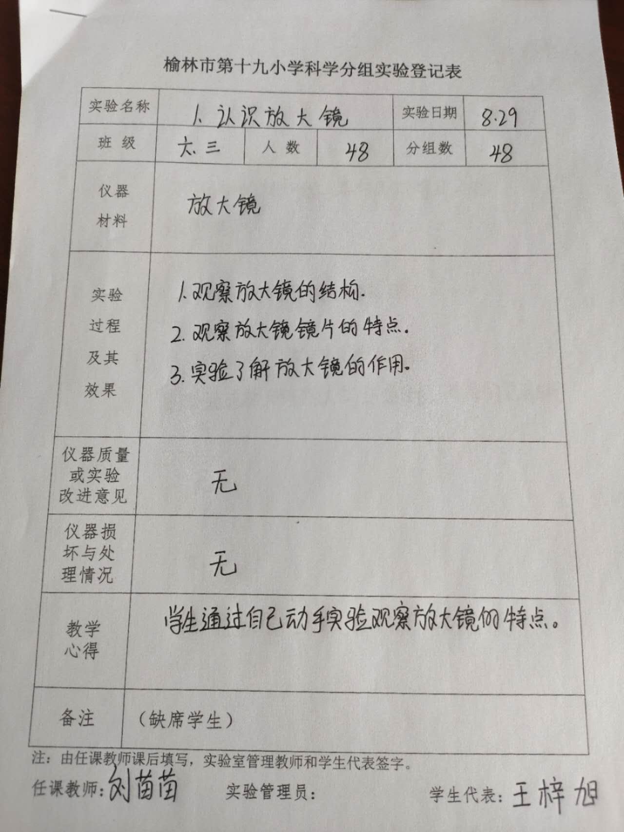 实验登记表