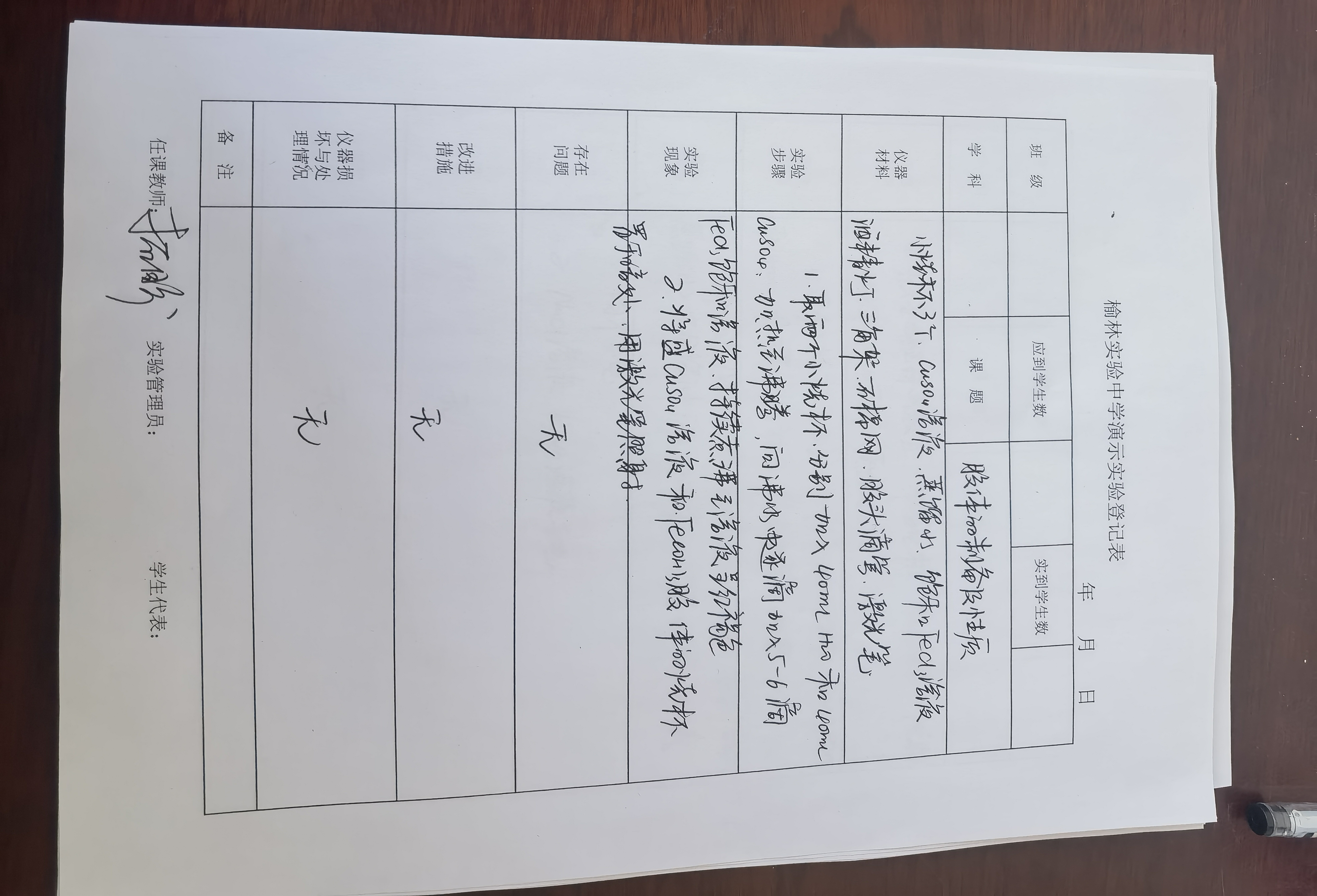 实验登记表