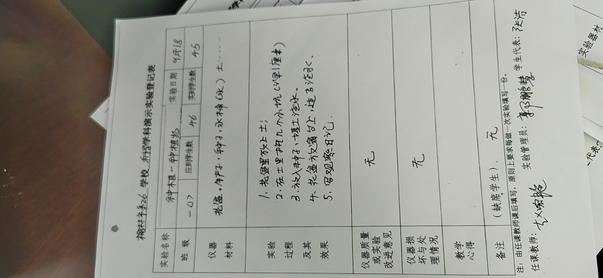 实验登记表