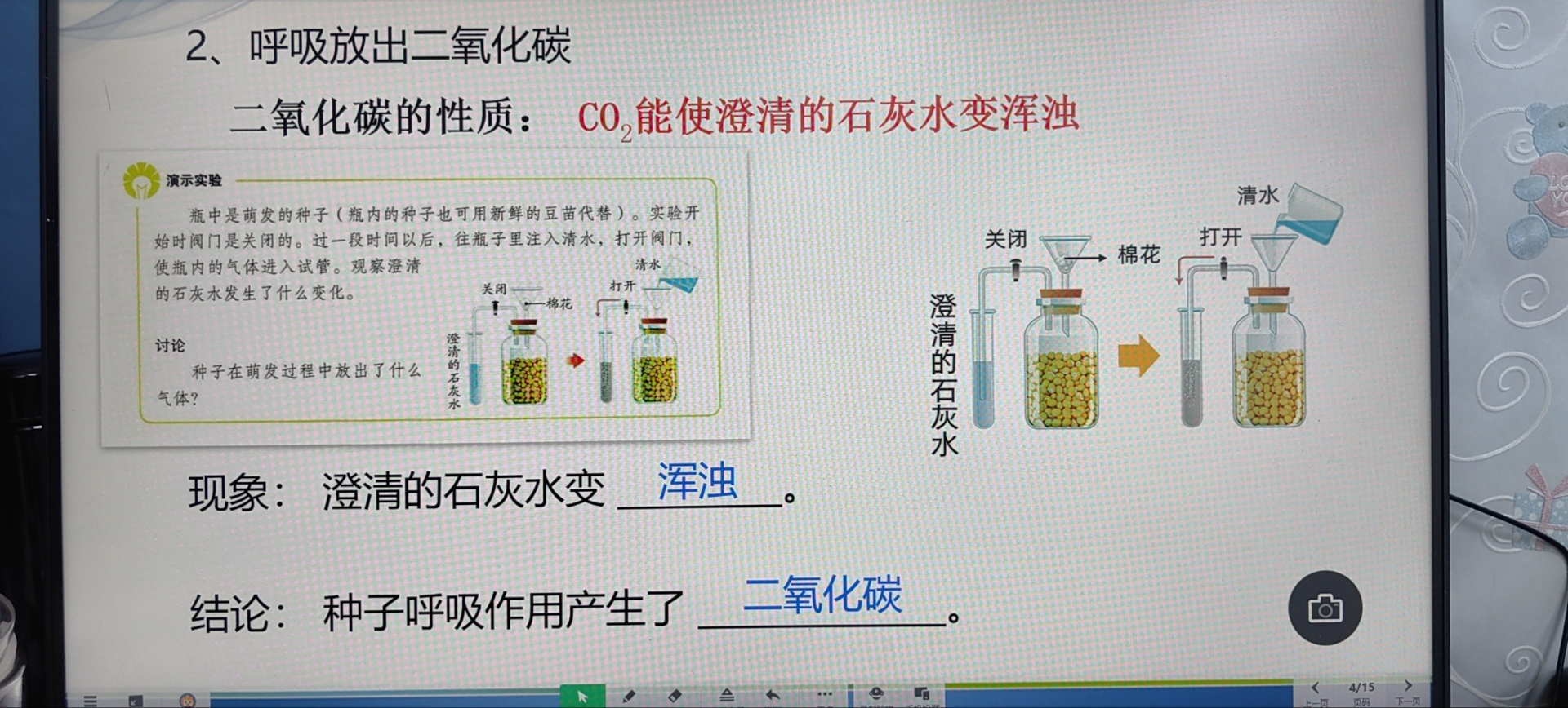 新版上册-第三章>第五节>3.5.2种子在萌发过程中放出二氧化碳